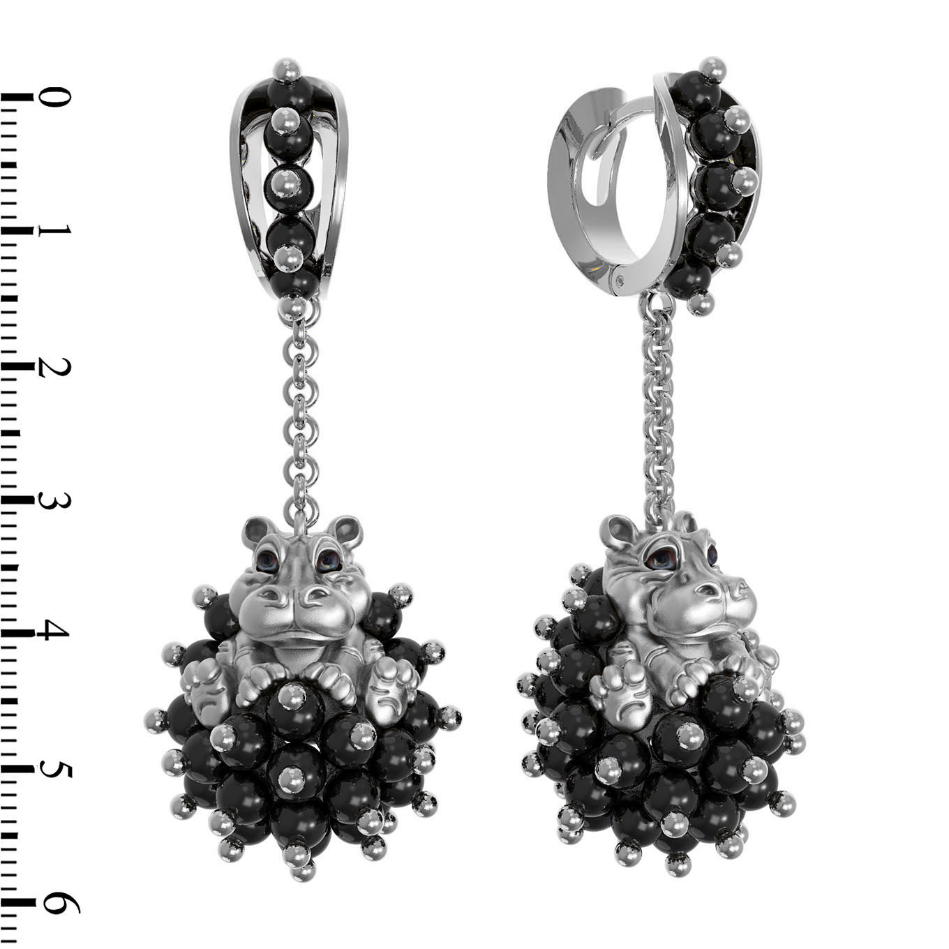 Откройте для себя оригинальный взгляд на высокое ювелирное искусство с этими авторскими серьгами, вошедшими в коллекцию De luxe Premium — Бегемотик. Изделие выполнено из благородного белого золота 585 пробы, которое эффектно подчеркивает холодный блеск материалов и детальную проработку каждого элемента. Дизайн в стиле анималистики привлекает внимание своей самобытностью: центральным элементом композиции является искусная фигурка бегемотика, выполненная с использованием декоративной эмали.