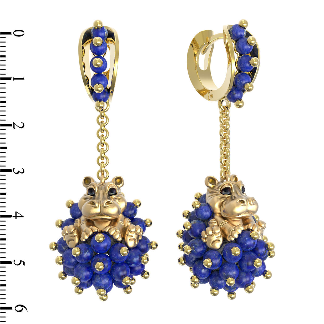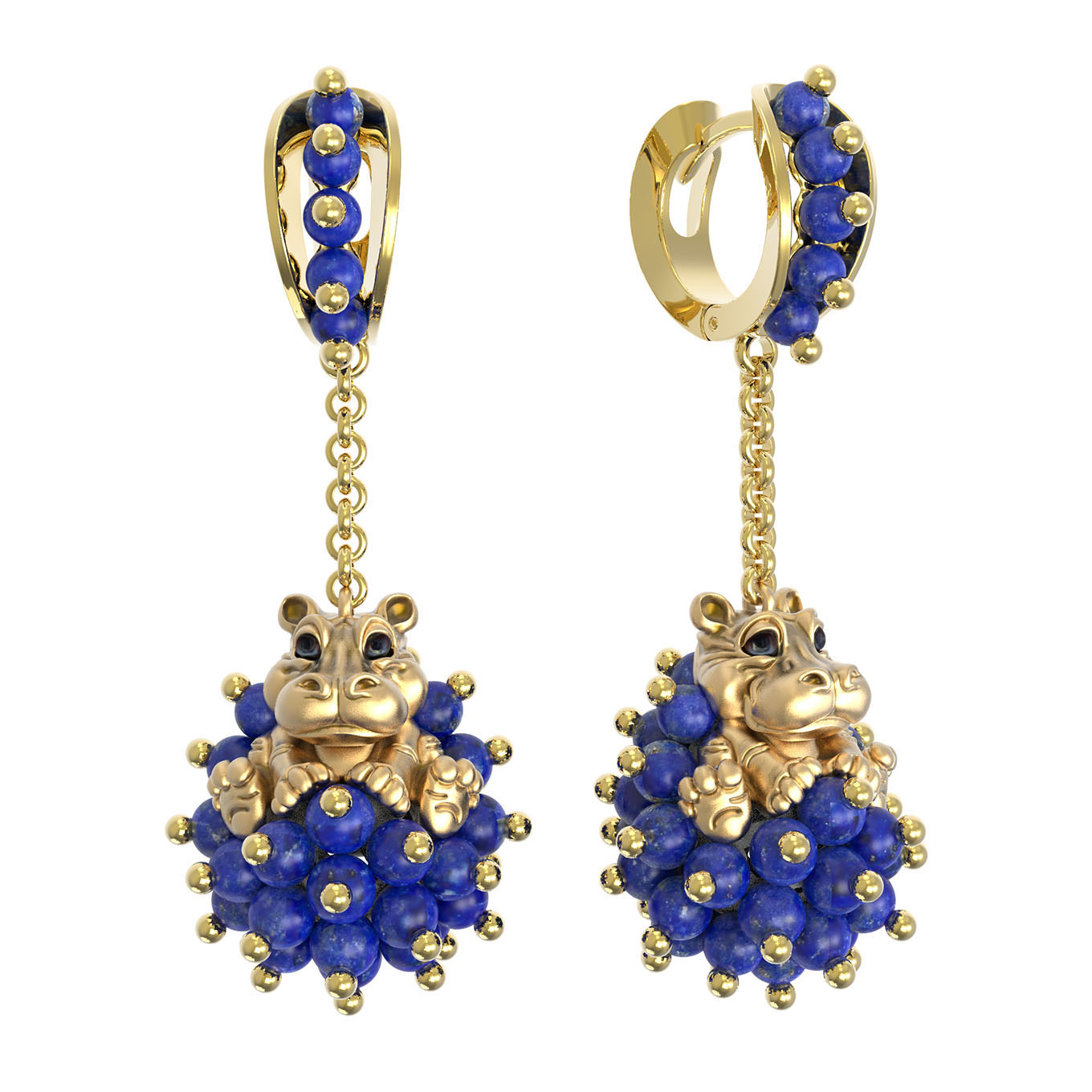 Эффектные и запоминающиеся серьги из лимонного золота 585 пробы станут воплощением вашего безупречного стиля. Ювелирное изделие из коллекции De luxe Premium — Бегемотик приковывает внимание оригинальным дизайном в виде животных: центральным элементом украшения выступает фигурка бегемотика, выполненная с художественной точностью. Изысканность дизайна подчеркивают яркие вставки: глубокий синий лазурит в форме бусин эффектно контрастирует с теплым блеском лимонного золота, создавая роскошную цветовую гамму.