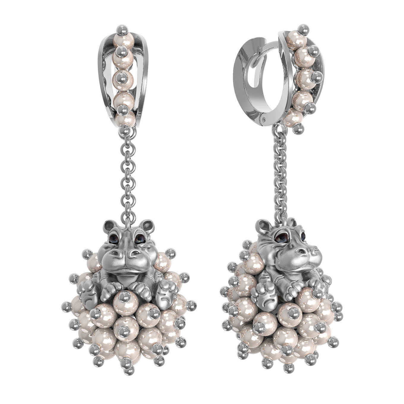 Это изделие одинаково хорошо подойдет как для женщин, так и для мужчин, предпочитающих необычные и статусные аксессуары. Серьги из белого золота с эмалью и жемчугом могут стать частью комплекта, дополнив ваш персональный стиль или послужив роскошным подарком для ценителей эксклюзивных ювелирных работ. Добавьте нотку креативности в свой гардероб вместе с украшениями из коллекции De luxe Premium — Бегемотик.