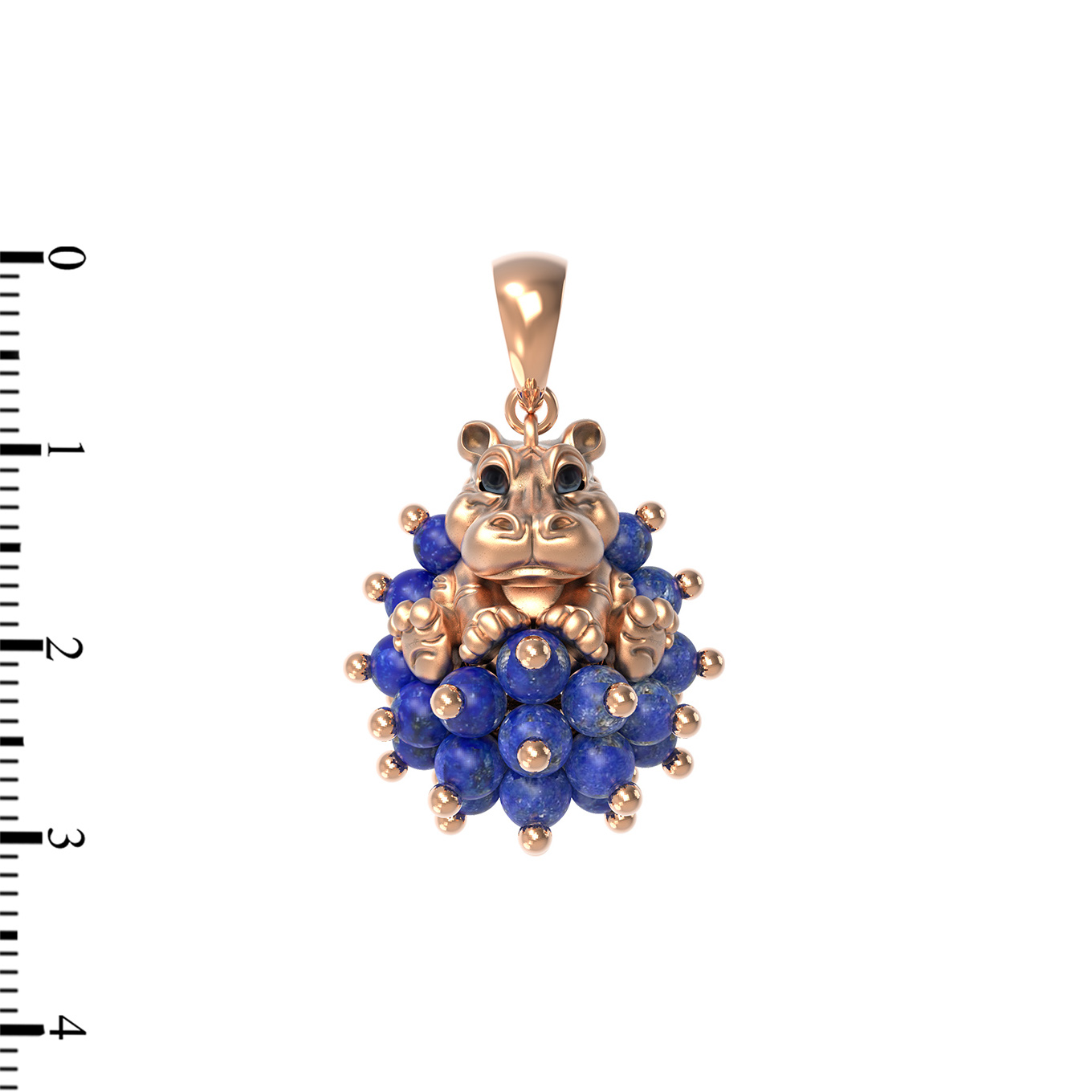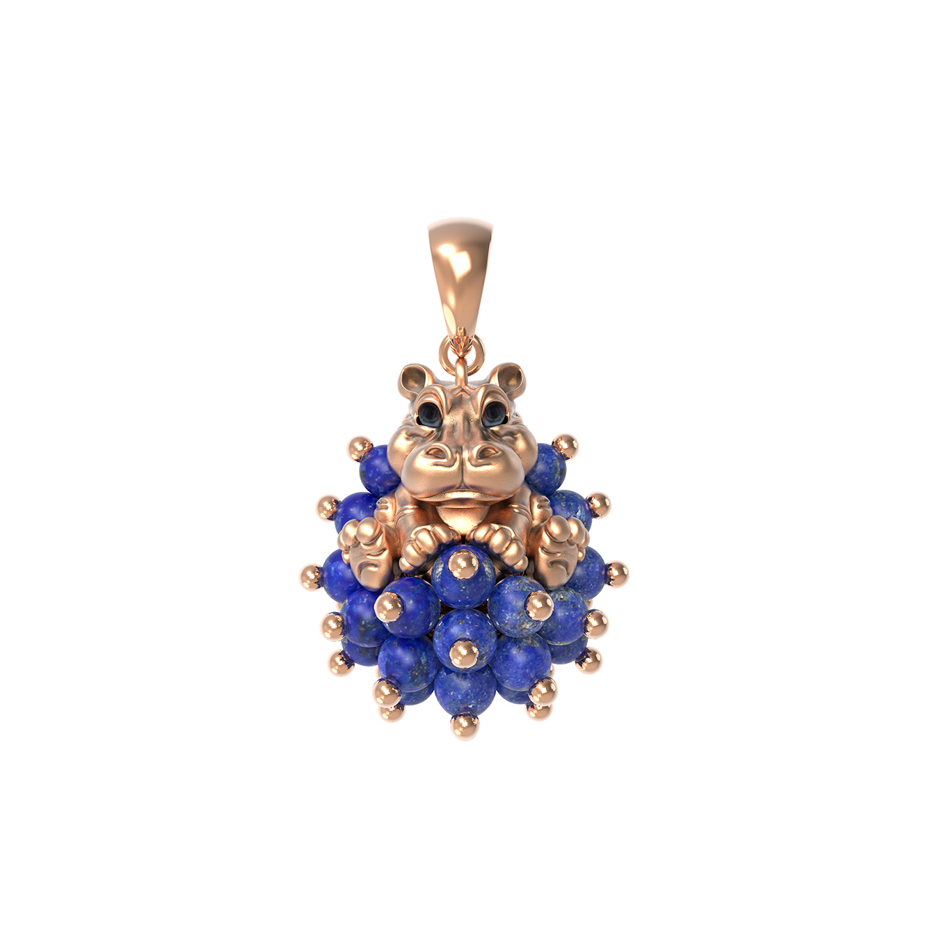 Эта оригинальная подвеска из коллекции De luxe Premium — Бегемотик станет ярким акцентом в вашем ювелирном гардеробе. Украшение выполнено из благородного красного золота 585 пробы, чей теплый оттенок идеально гармонирует с глубоким синим цветом вставок. Дизайн изделия вдохновлен миром животных: центральный элемент — фигурка бегемотика, выполненная с использованием изящной эмали, придающей образу выразительность и глубину.