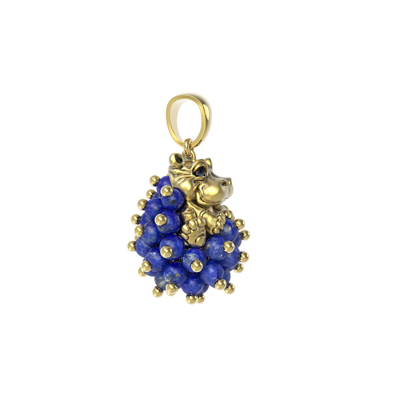 Особую выразительность подвеске из коллекции De luxe Premium — Бегемотик придает сочетание лазурита и эмали. Синий цвет вставок в форме бусины, количество которых достигает 55 штук, создает эффектный контраст с золотой основой. Разноцветные акценты эмали подчеркивают игривый характер дизайна, делая это украшение не только статусным, но и стильным дополнением вашего гардероба.