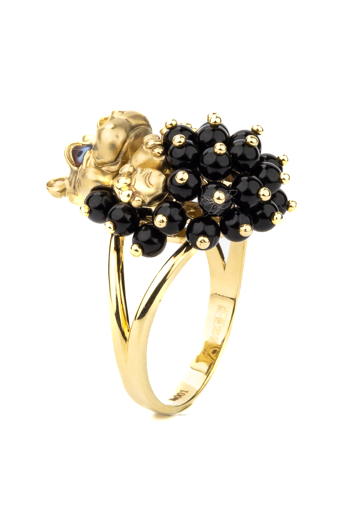 Кольцо из лимонного золота c эмалью и ониксом