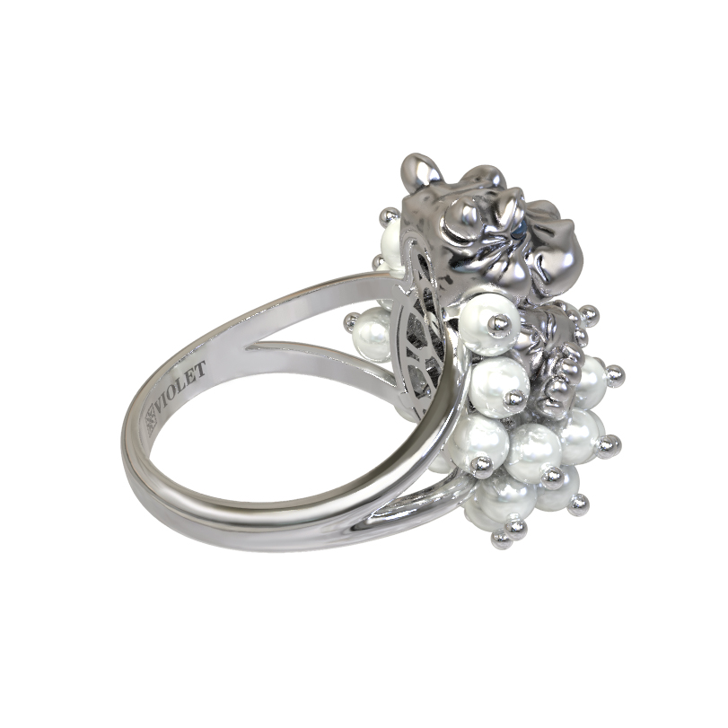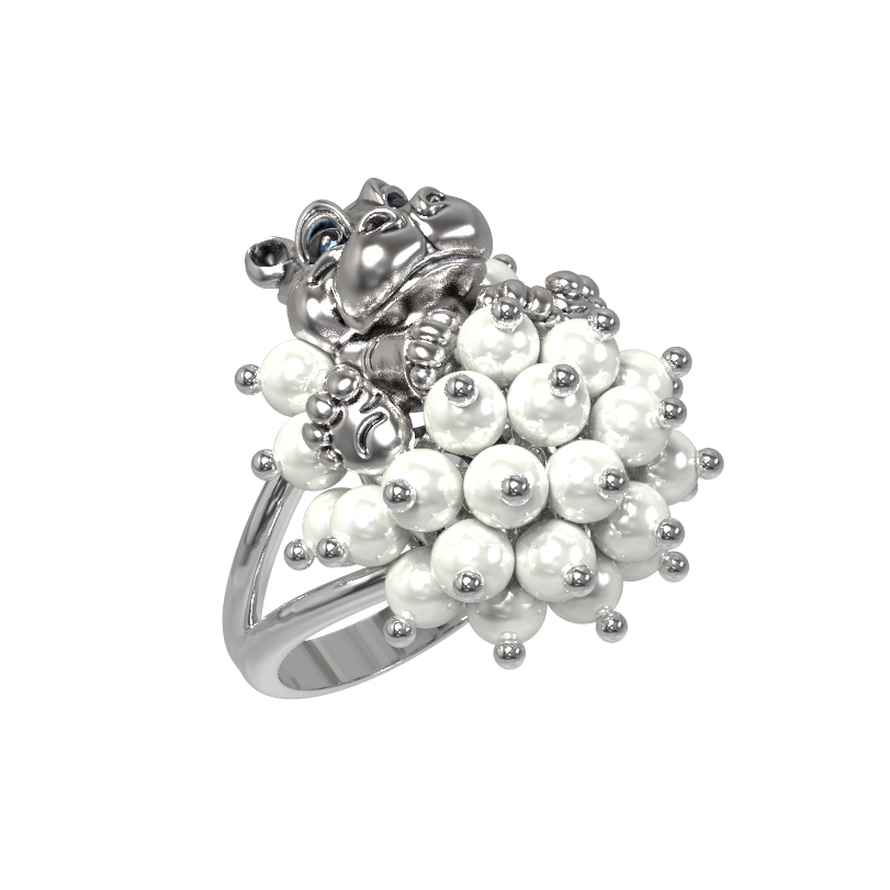 Откройте для себя оригинальное кольцо из коллекции De luxe Premium — Бегемотик, которое станет ярким акцентом в вашем образе. Это ювелирное изделие, выполненное в смелом дизайне, представляет собой искусное сочетание высокого ювелирного мастерства и необычной эстетики. Центральным элементом украшения выступает милая фигурка бегемотика, выполненная с проработкой мельчайших деталей, дополненная яркими акцентами эмали. Особую роскошь кольцу придает россыпь из 26 жемчужин круглой формы, которые создают эффектный объемный декор.