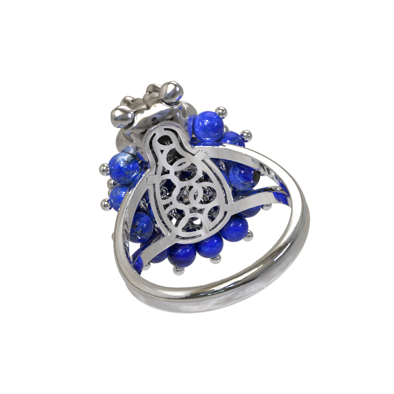 Кольцо из белого золота c эмалью и лазуритом