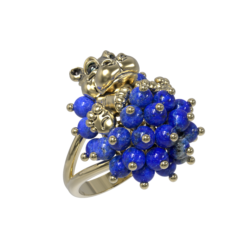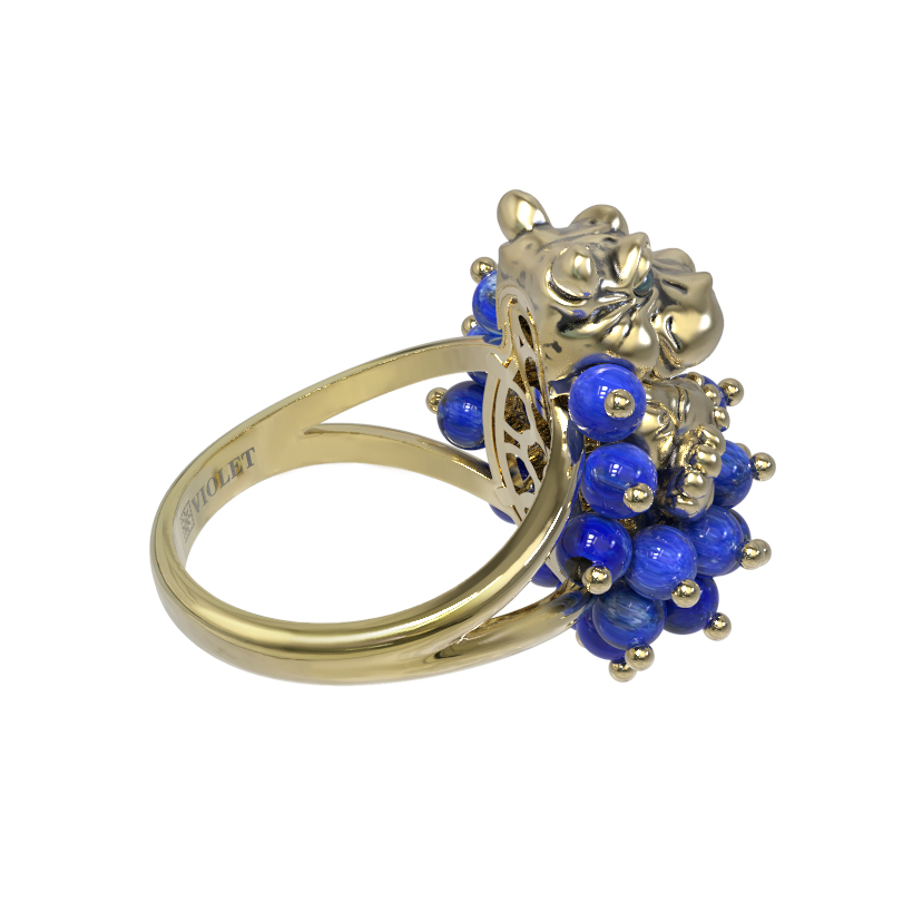 Декоративная часть изделия состоит из 26 вставок из лазурита, имеющих форму бусин. Насыщенный синий цвет натурального камня эффектно контрастирует с нежным оттенком лимонного золота, создавая гармоничное сочетание. Благодаря необычному дизайну с анималистическими мотивами, это кольцо одинаково хорошо подходит как для женщин, так и для мужчин, желающих подчеркнуть свою индивидуальность. Украшение станет смелым дополнением образа или частью изысканного комплекта.