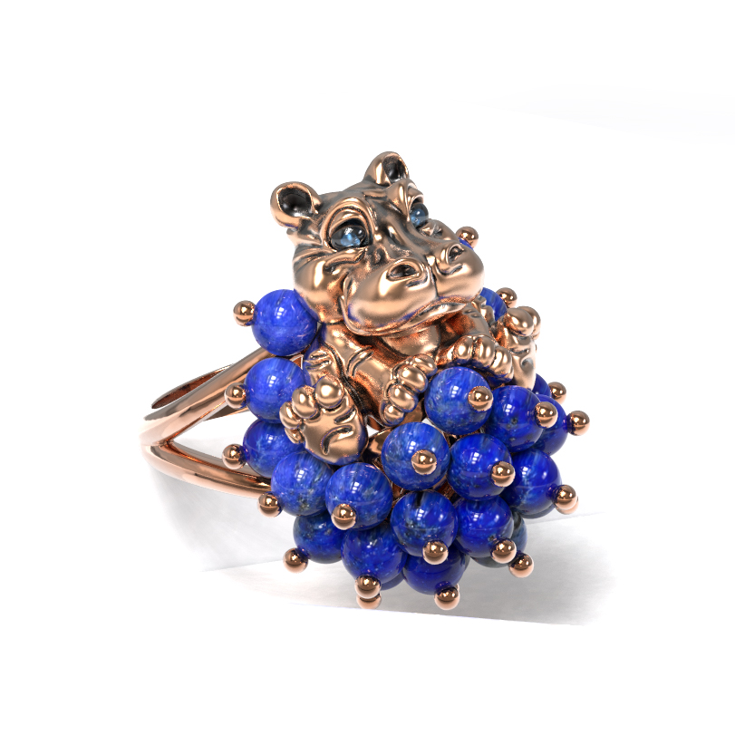 Представляем вашему вниманию уникальное ювелирное изделие из коллекции De luxe Premium — Бегемотик — кольцо, которое станет главным акцентом вашего образа. Дизайн украшения выполнен в оригинальной тематике животных и представляет собой искусную фигурку бегемота, органично дополненную россыпью драгоценных деталей. Это авторское кольцо создано для тех, кто ценит смелые решения и высокое ювелирное искусство.