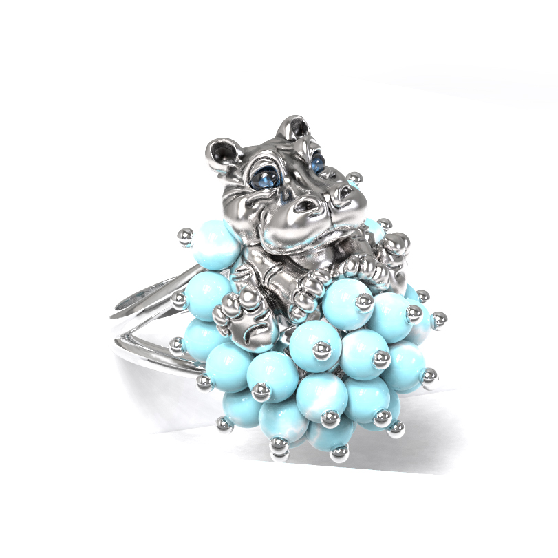Кольцо из белого золота 585 пробы из коллекции De luxe Premium — Бегемотик станет акцентным украшением вашего образа, привнося в него нотки игривости и утонченного стиля. Дизайнеры ювелирного дома воплотили в этом изделии оригинальную концепцию — центральным элементом декора выступает фигурка бегемотика, выполненная в металле белого цвета. Этот необычный дизайн с анималистическими мотивами гармонично дополнен россыпью вставок, создающих объемную и выразительную композицию.