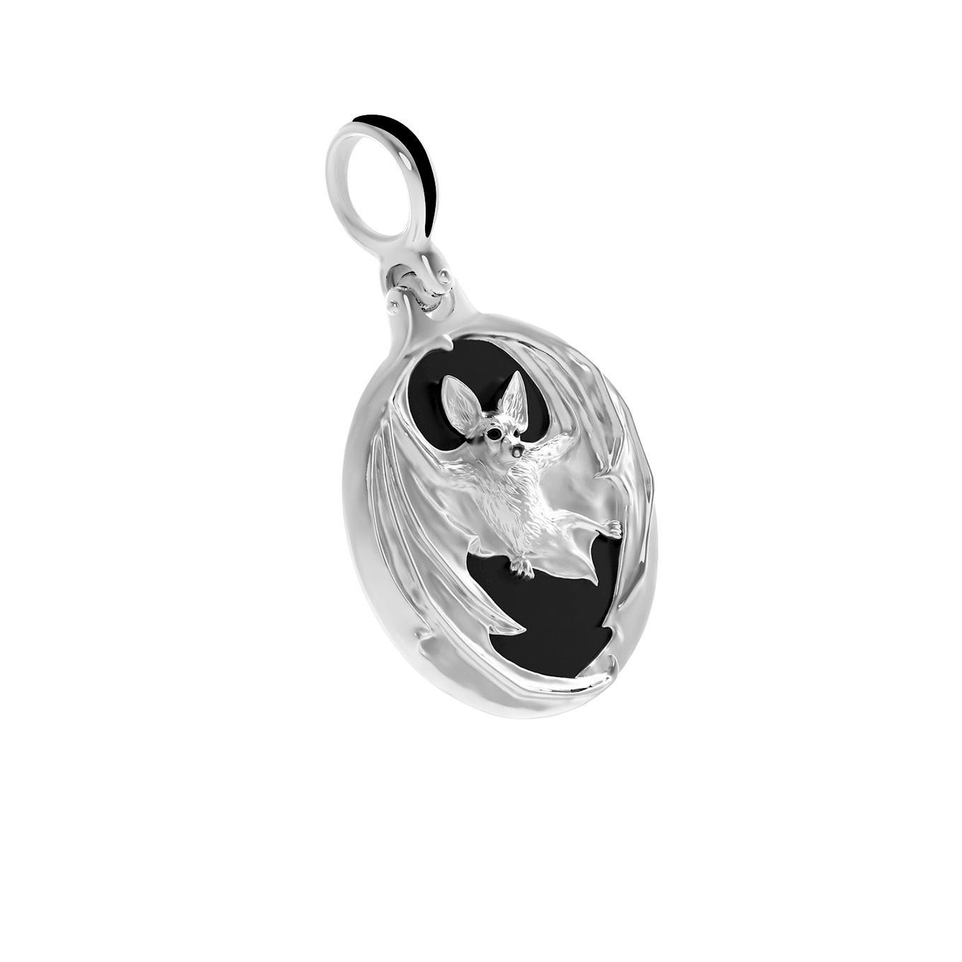 Мужская подвеска из белого золота 585 пробы — это сочетание смелого дизайна и благородных материалов. Изделие, представленное в коллекции De luxe Premium — Летучая мышь, сразу приковывает взгляд своей неординарной эстетикой. Центральным элементом украшения является искусная фигура летучей мыши, выполненная с высокой детализацией, которая парит на фоне контрастной черной вставки. Ювелирная эмаль и глубокий оттенок оникса круглой формы подчеркивают строгость и мужественность образа, создавая эффектный акцент.