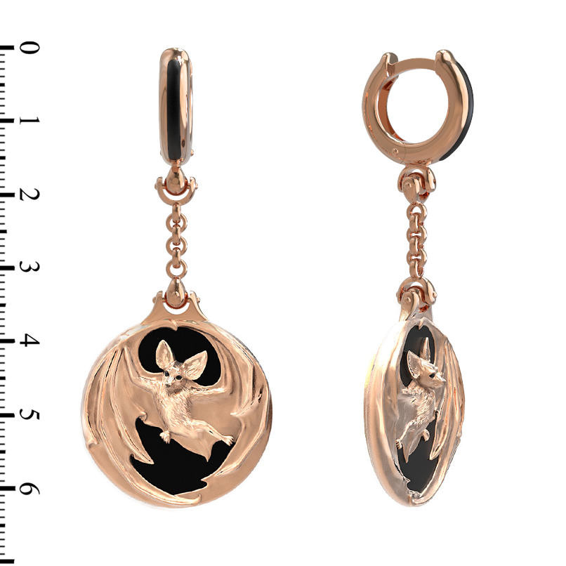 Эффектные серьги из красного золота 585 пробы из коллекции De luxe Premium — Летучая мышь станут выразительным акцентом в вашем образе. Дизайнерское исполнение модели вдохновлено образом летучей мыши, что придает украшению загадочный и притягательный характер. Ювелирная композиция построена на контрастном сочетании благородного металла и вставок из черной эмали и круглого оникса. Глубокий черный цвет вставок подчеркивает сияние золота и детализацию фигурного элемента, создавая гармоничный и завершенный вид.