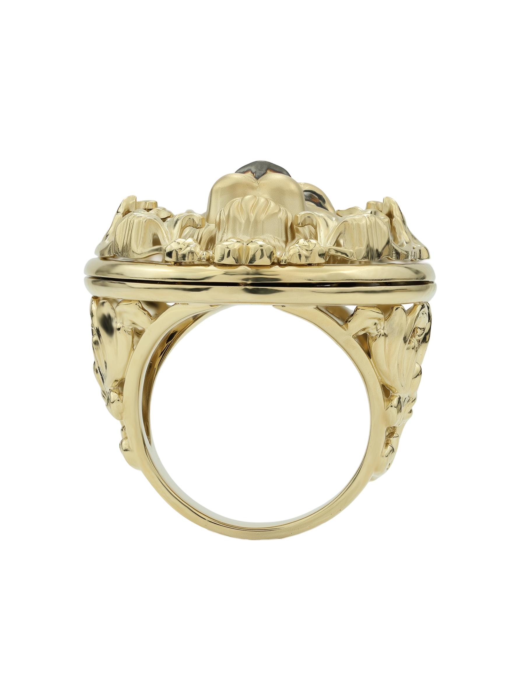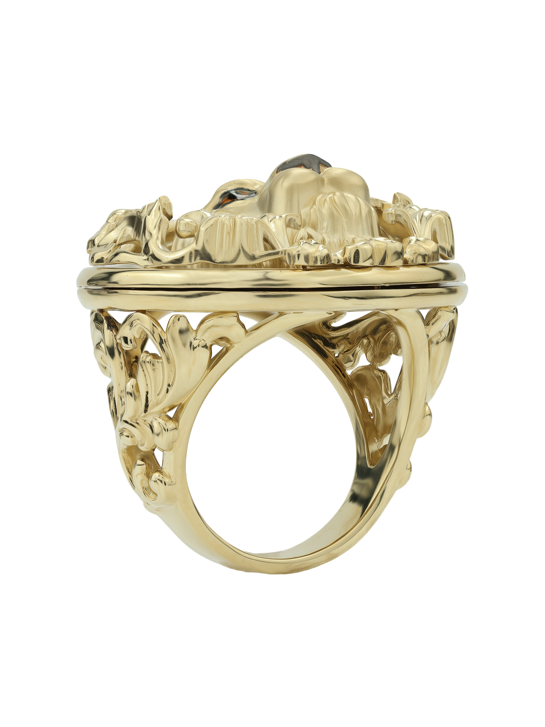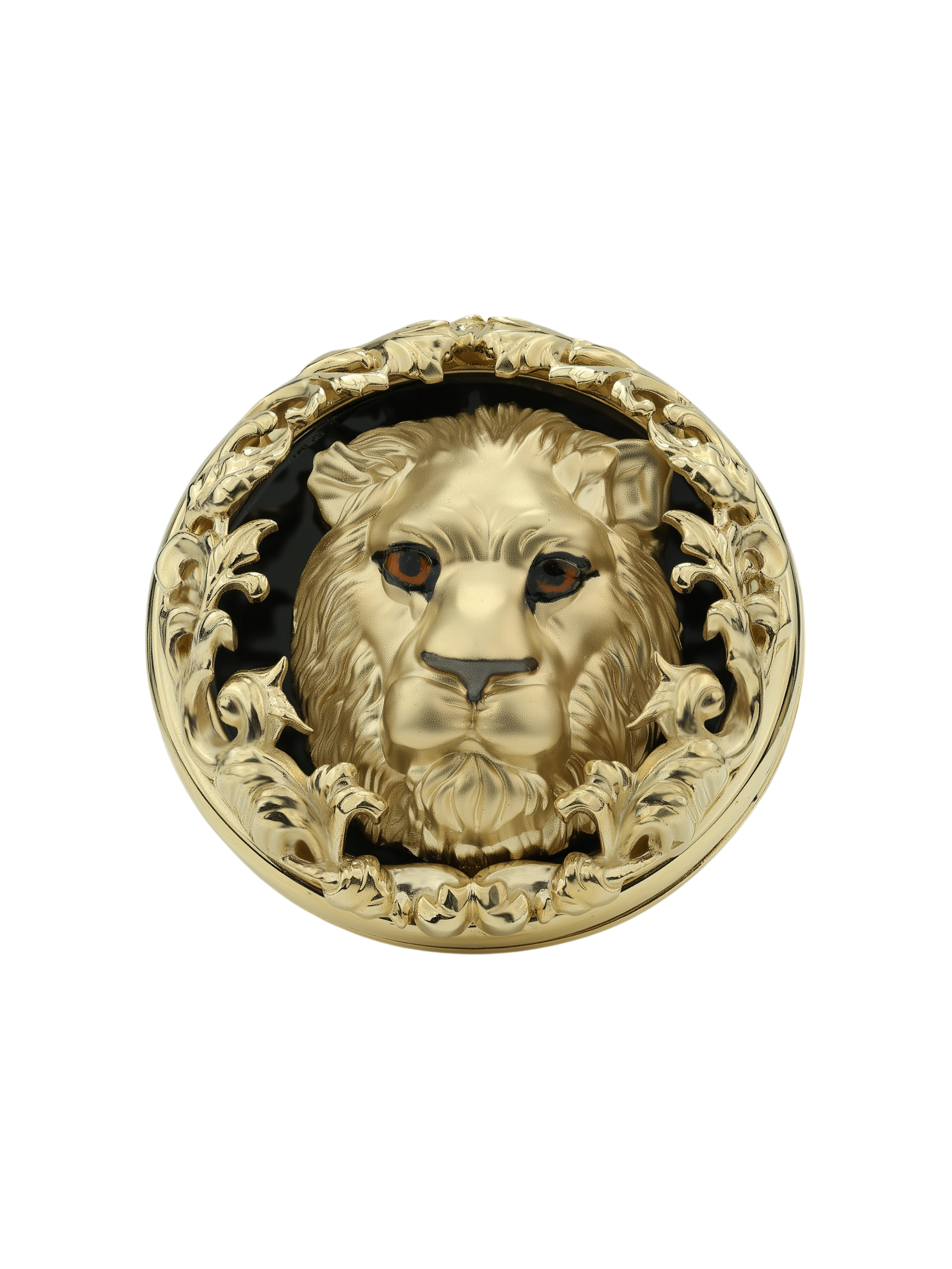 Мужское кольцо из лимонного золота 585 пробы из коллекции De luxe Premium — Львы — это статусное украшение для тех, кто ценит уверенность и характер. Дизайн изделия выполнен в стиле анималистичной классики: в центре композиции расположен детально проработанный образ льва, символизирующий силу, доблесть и лидерские качества владельца. Мастерство исполнения подчеркивает благородный блеск лимонного золота, который гармонично сочетается с глубоким черным цветом оникса и яркими акцентами эмали. Круглая форма вставки придает украшению завершенность и монументальность.