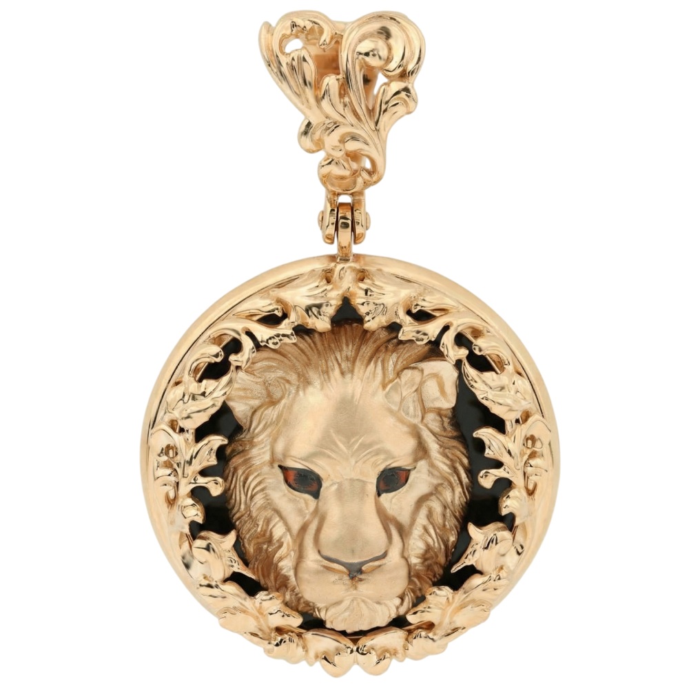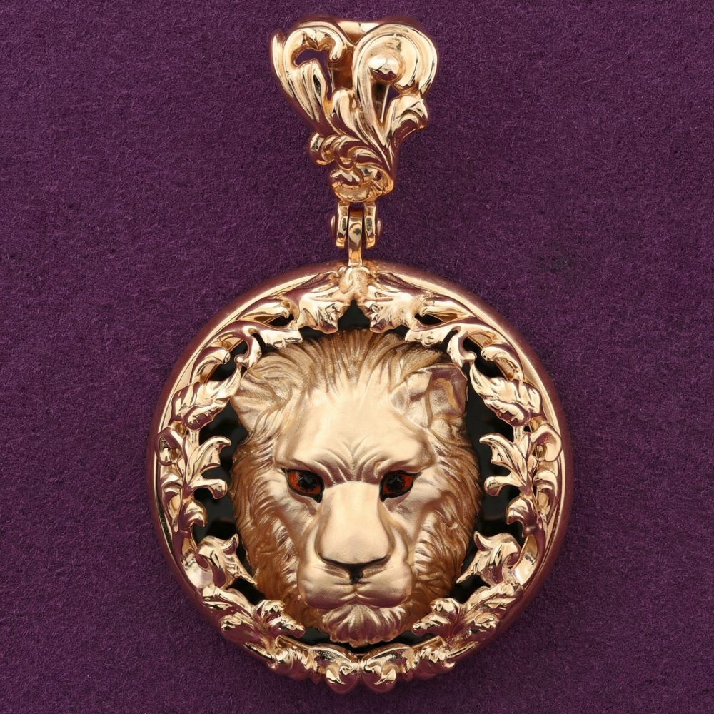 Подвеска из коллекции De luxe Premium — Львы — это воплощение мужественности, статуса и уверенности в себе. Ювелирное изделие выполнено из красного золота 585 пробы, что придает украшению теплый, благородный оттенок. Дизайн изделия привлекает внимание мастерски проработанным изображением льва — символа власти и бесстрашия. Центральный элемент композиции гармонично сочетается с черным ониксом, создавая выразительный контраст, а акценты из разноцветной эмали добавляют глубины и детализации образу хищника.
