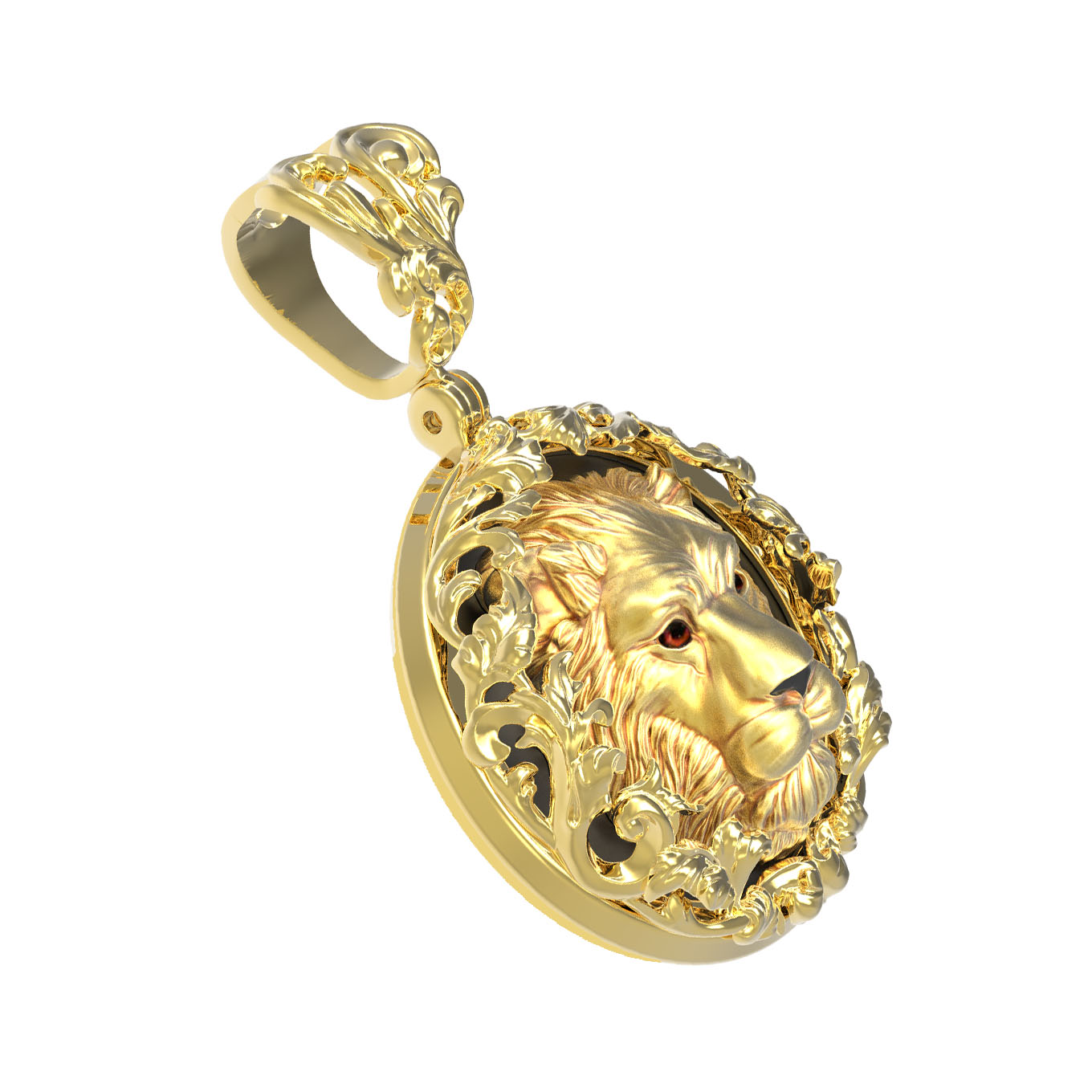 Подвеска из лимонного золота 585 пробы из коллекции De luxe Premium — Львы — это выбор мужчины, который ценит статус, уникальный дизайн и безупречное качество исполнения. Центральным элементом украшения является рельефное изображение льва, символизирующее силу, власть и лидерские качества владельца. Мастерски проработанные детали гривы льва гармонично дополнены изящным узором по периметру, который создает эффект обрамления.