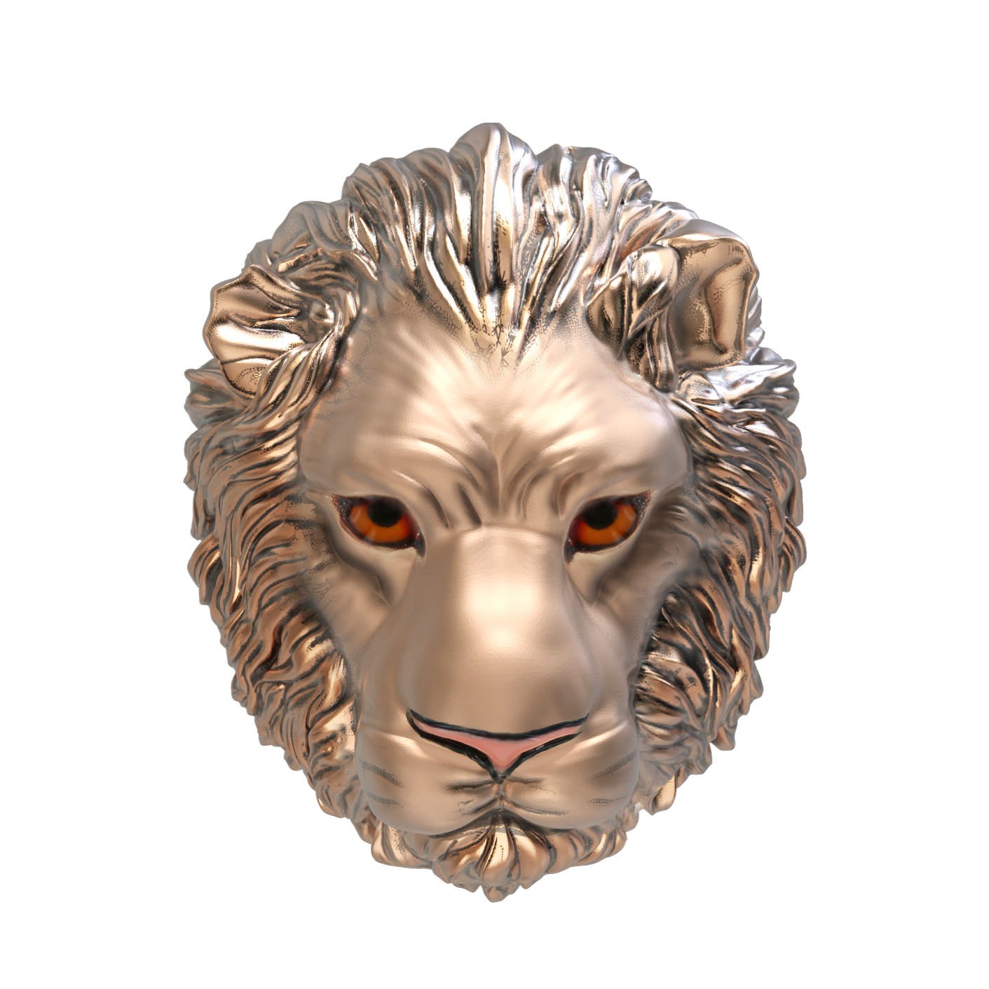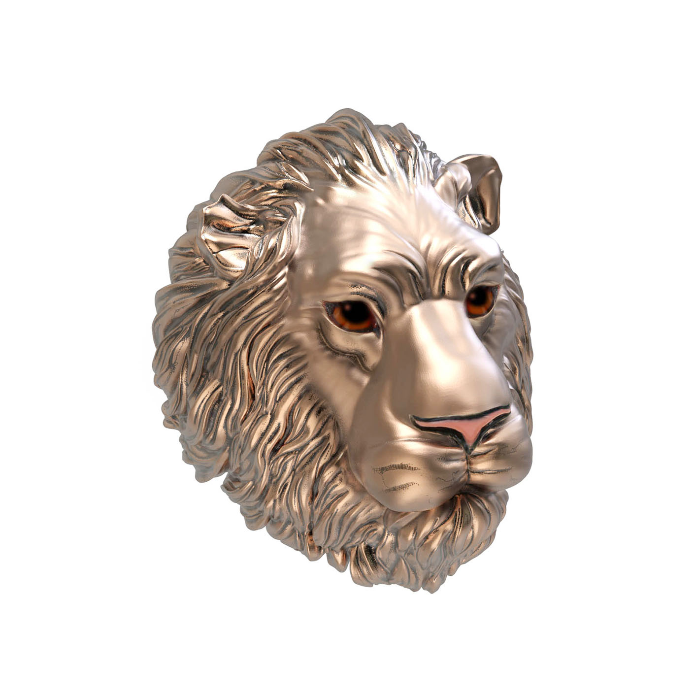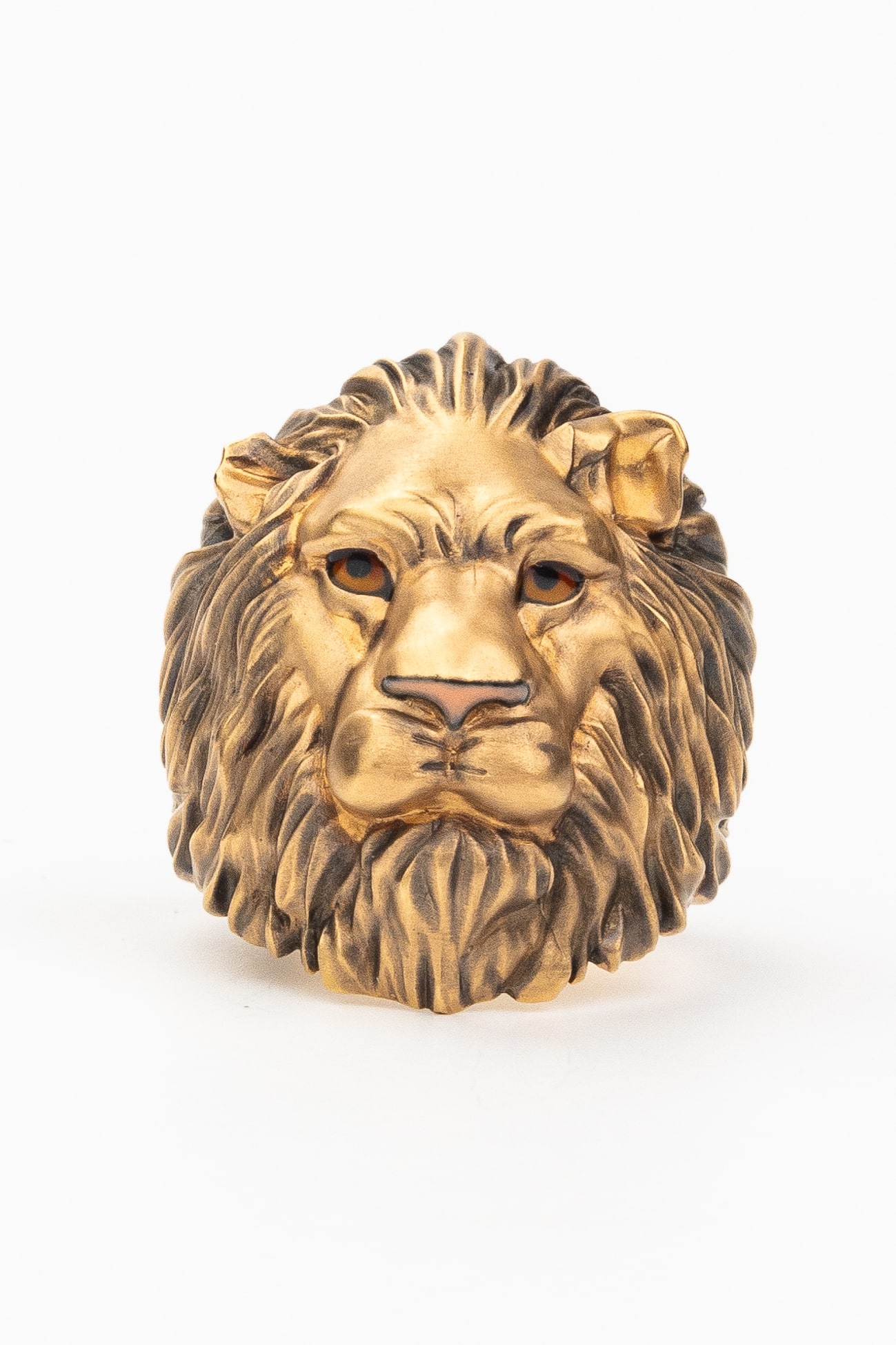 Особую художественную глубину украшению придает использование ювелирной эмали. Разноцветные вставки, мастерски нанесенные на детали львиной морды, создают эффектный контраст с теплым оттенком красного золота, добавляя образу динамики и характера. Такое ювелирное решение подчеркивает индивидуальность владельца и безупречный вкус.