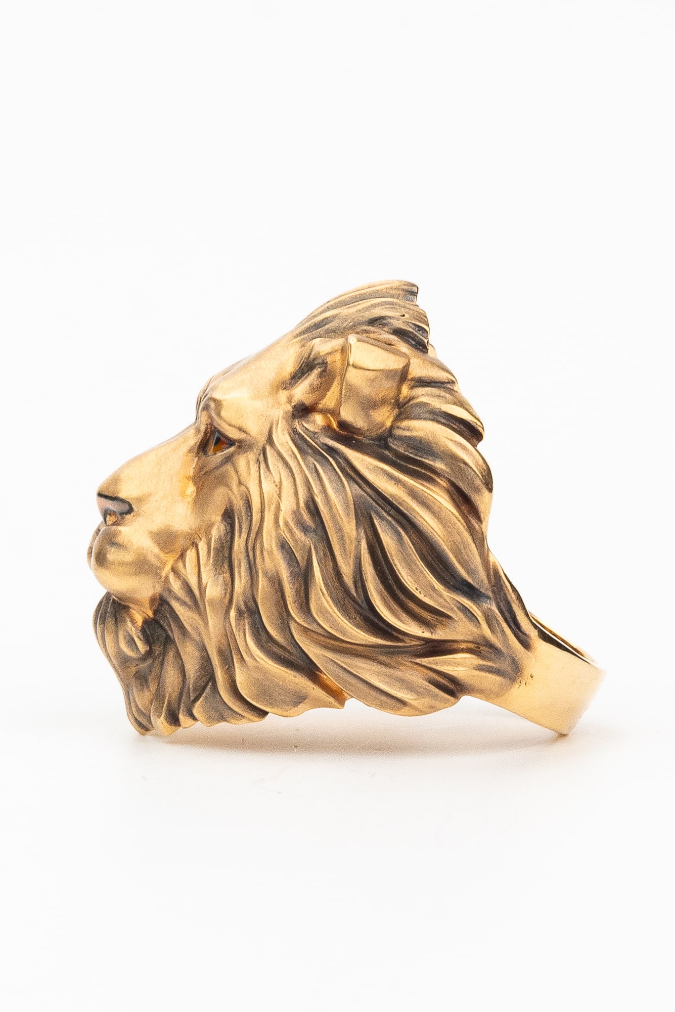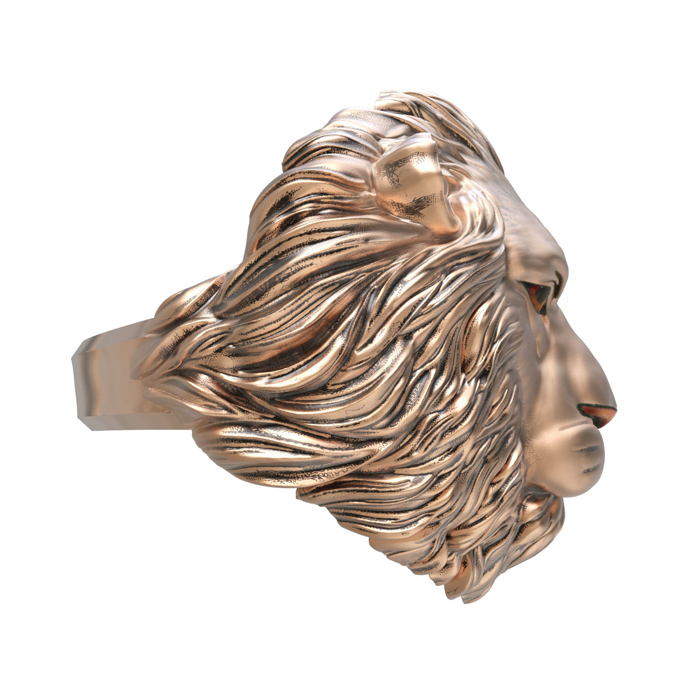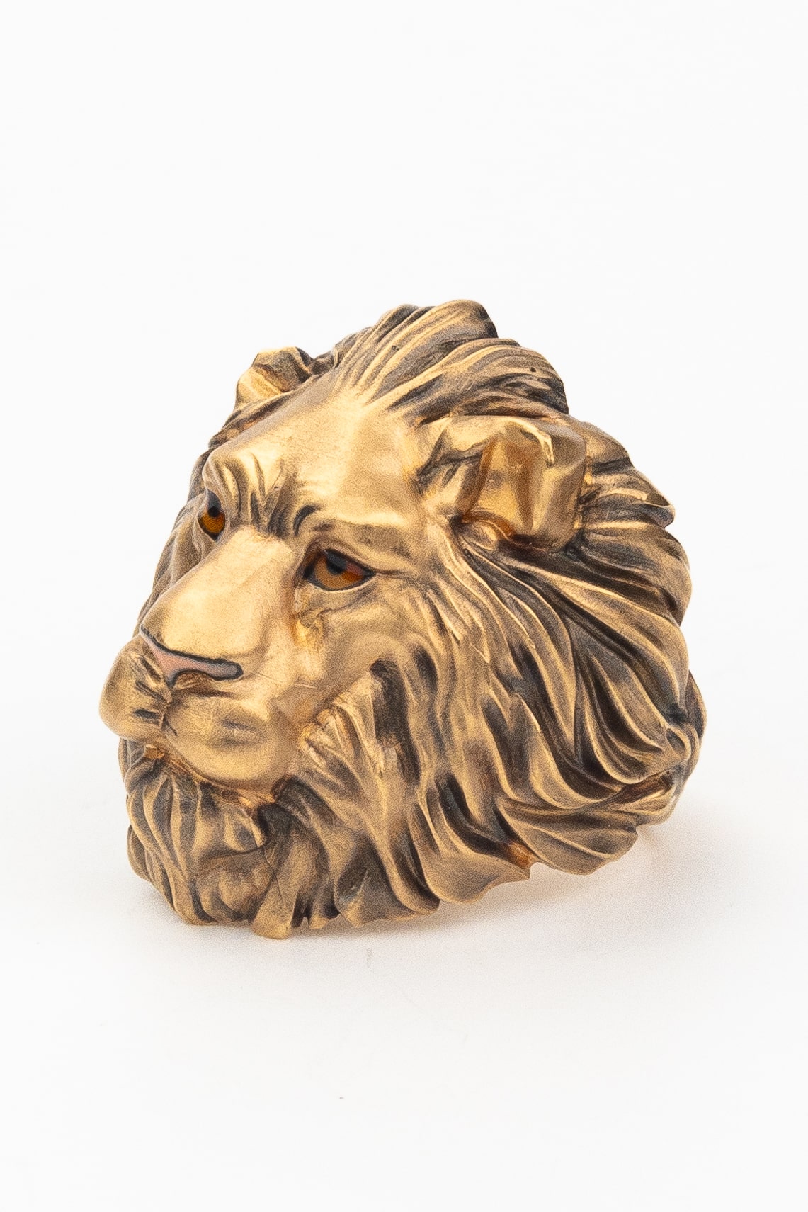 Особую художественную глубину украшению придает использование ювелирной эмали. Разноцветные вставки, мастерски нанесенные на детали львиной морды, создают эффектный контраст с теплым оттенком красного золота, добавляя образу динамики и характера. Такое ювелирное решение подчеркивает индивидуальность владельца и безупречный вкус.