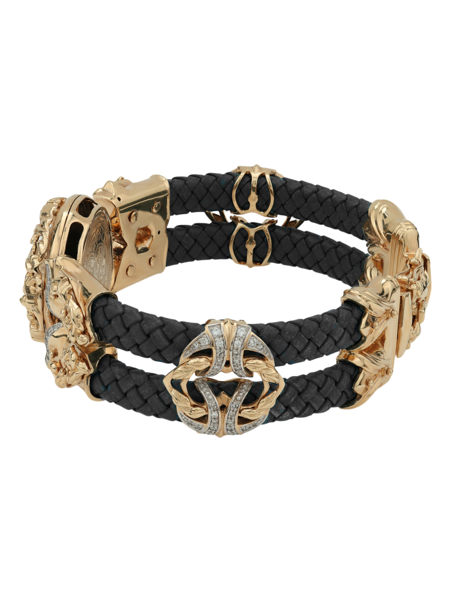 Браслет из золота c эмалью, бриллиантами, шнурком и ониксом