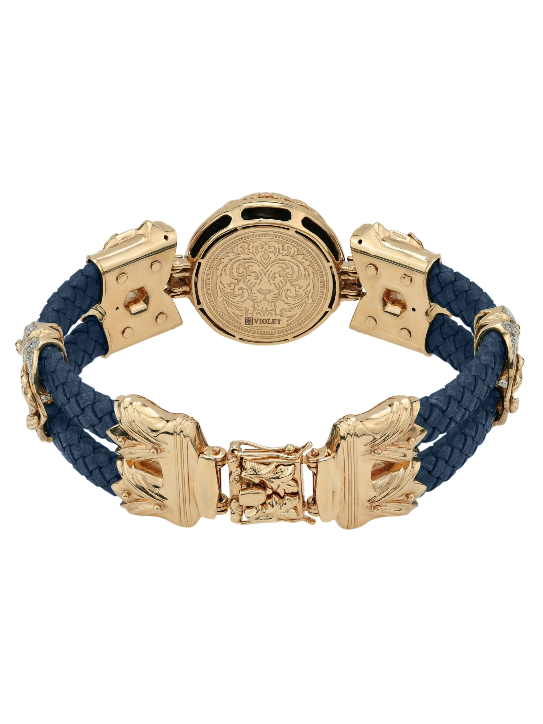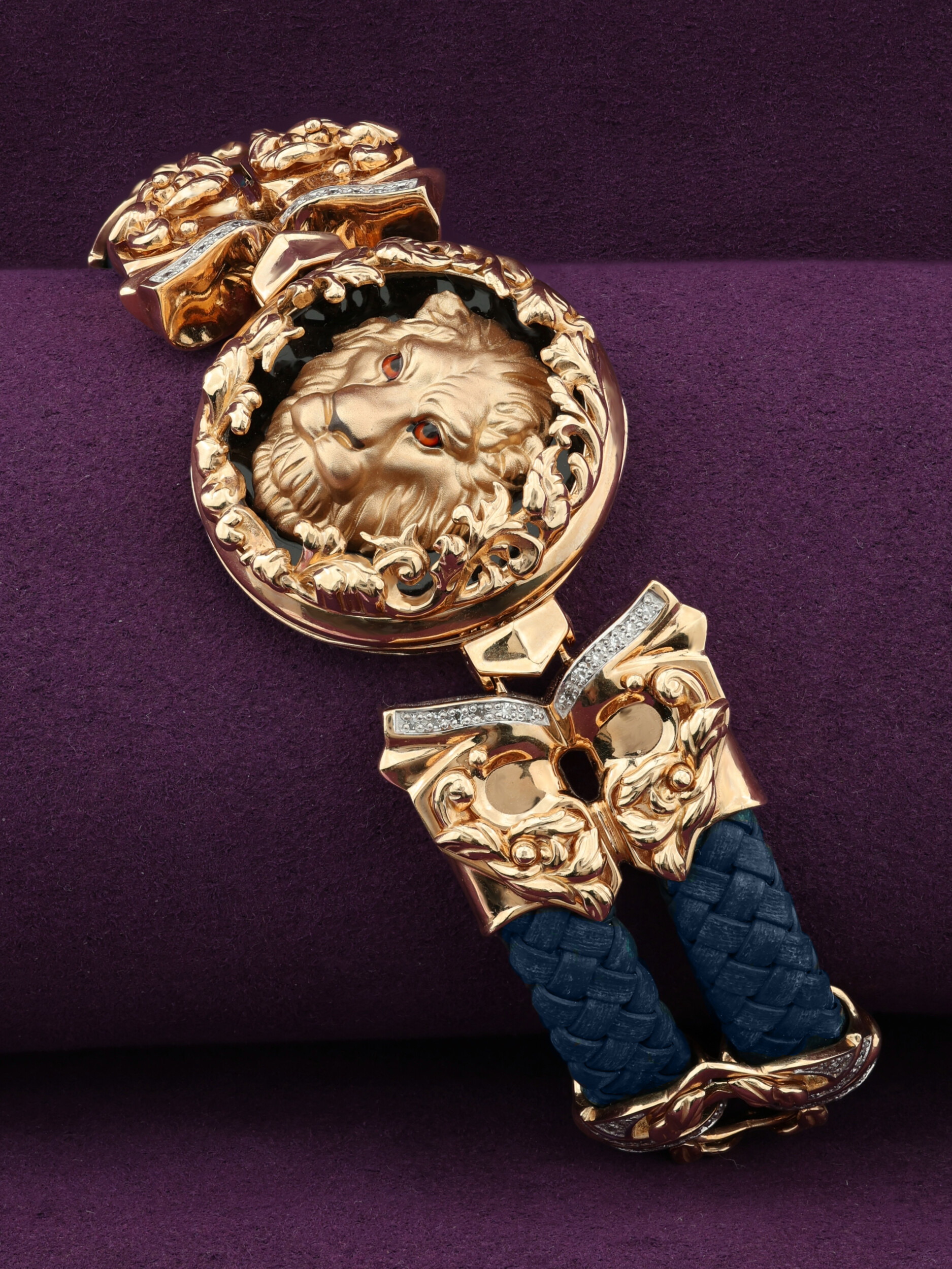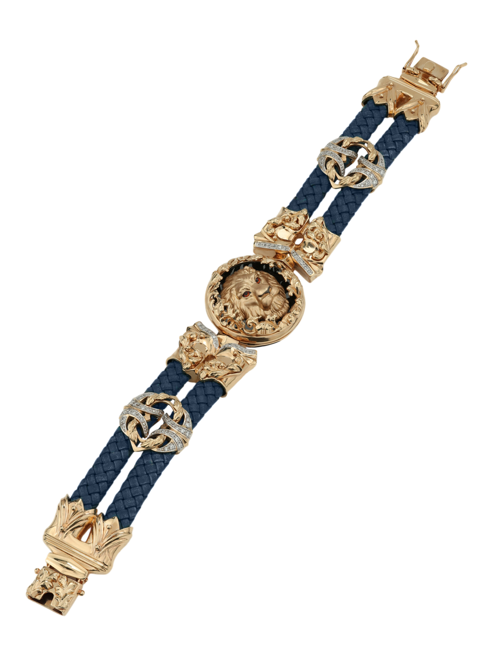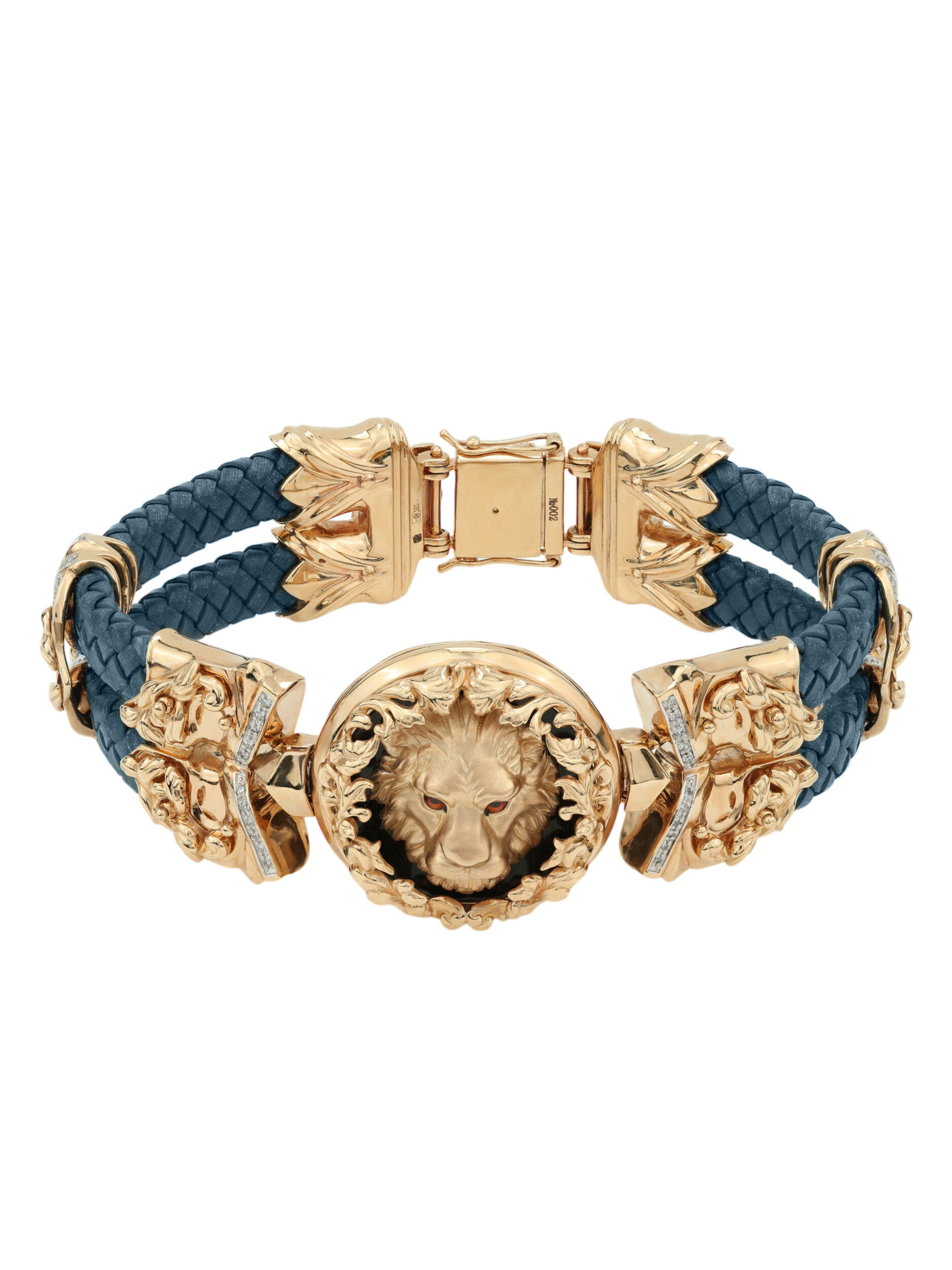 Браслет из золота c эмалью, бриллиантами, кожаным шнурком и ониксом