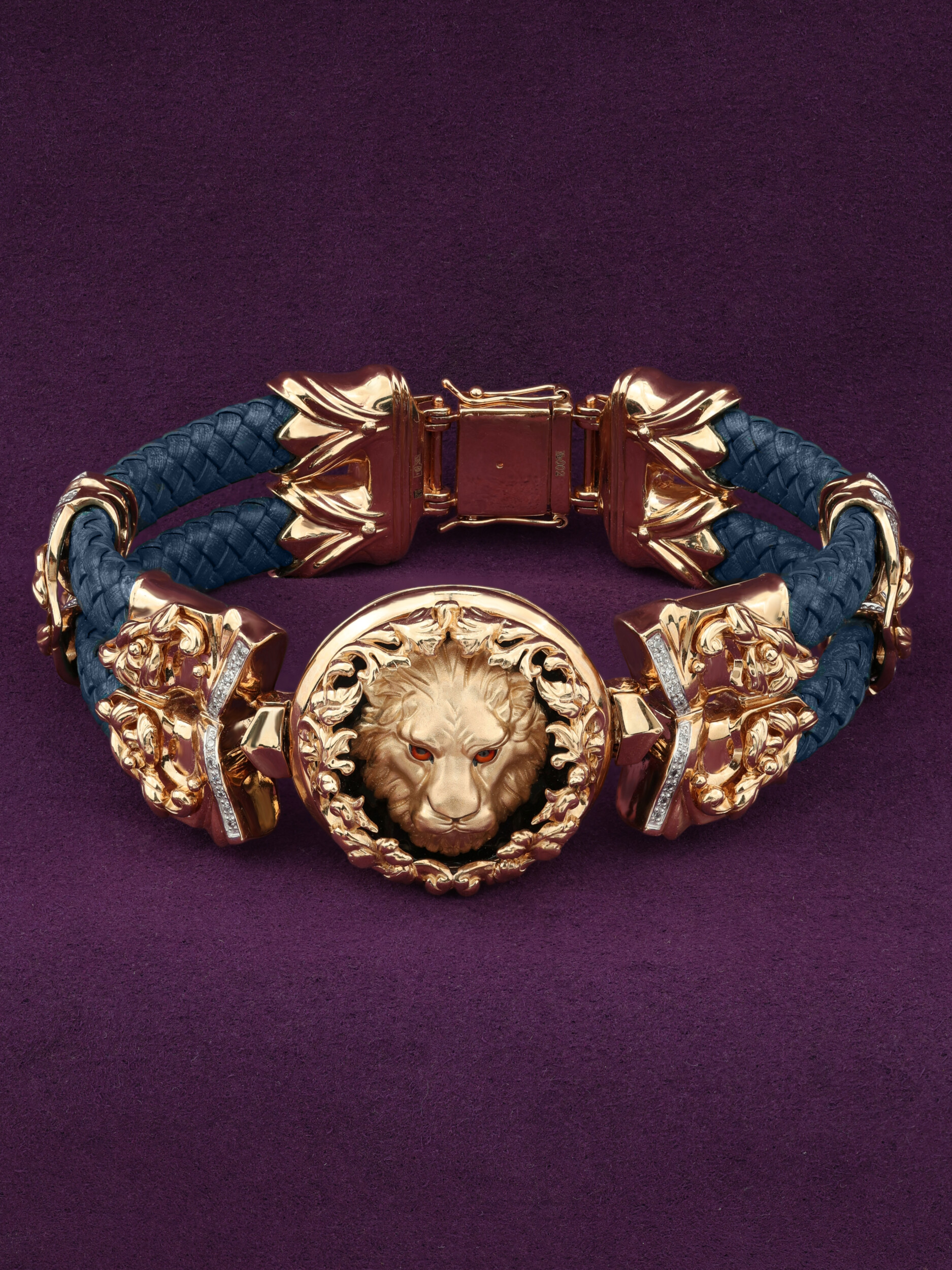 Мужской браслет из коллекции De luxe Premium — Львы — это статусное украшение для тех, кто ценит смелые дизайнерские решения и высокое ювелирное мастерство. Основой изделия служит красное золото 585 пробы, которое придает украшению благородный теплый оттенок и долговечность. Центральный элемент дизайна выполнен в виде детализированной головы льва, подчеркивающей характер и уверенность своего владельца.