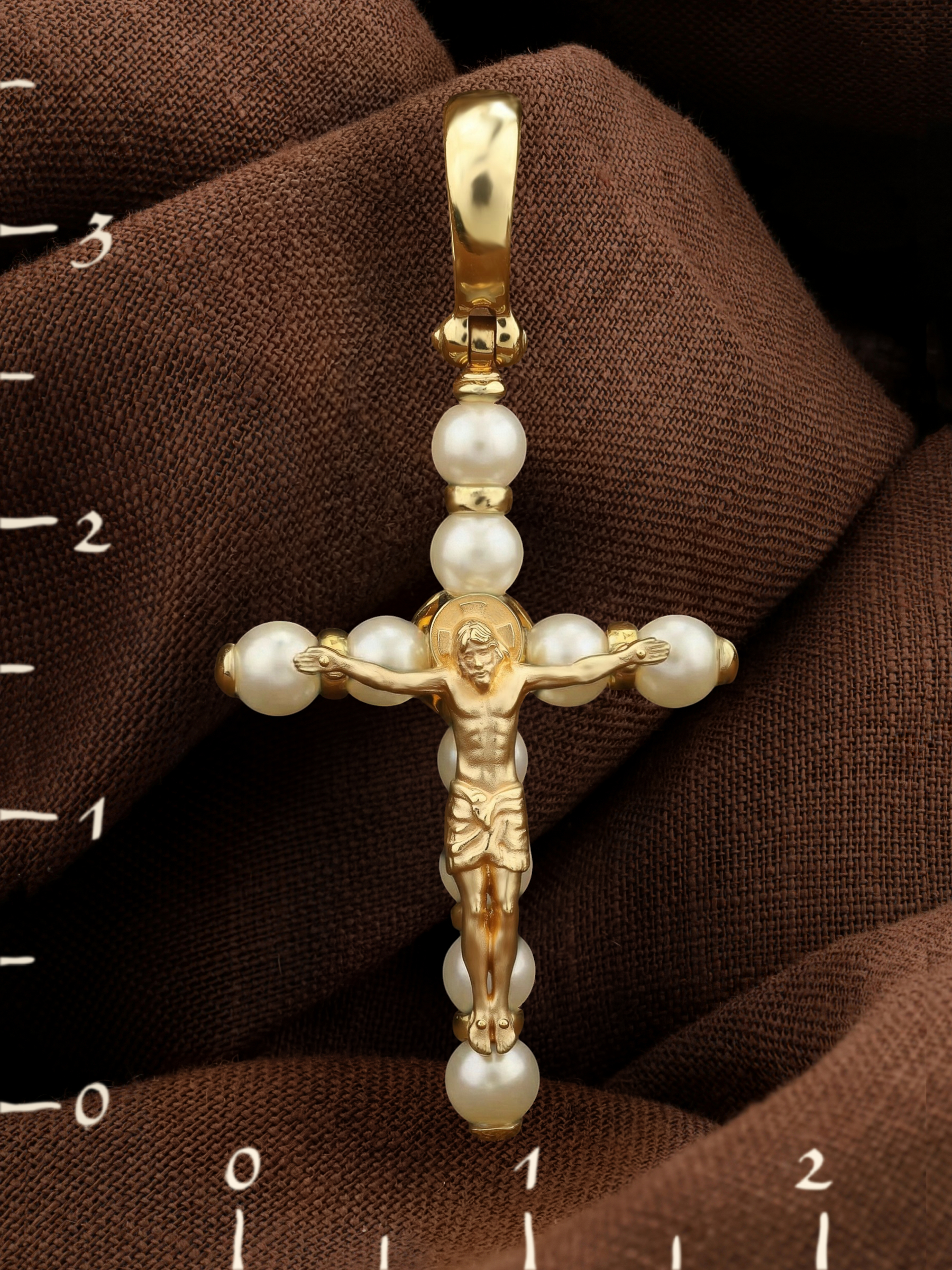 Крест из лимонного золота c жемчугом