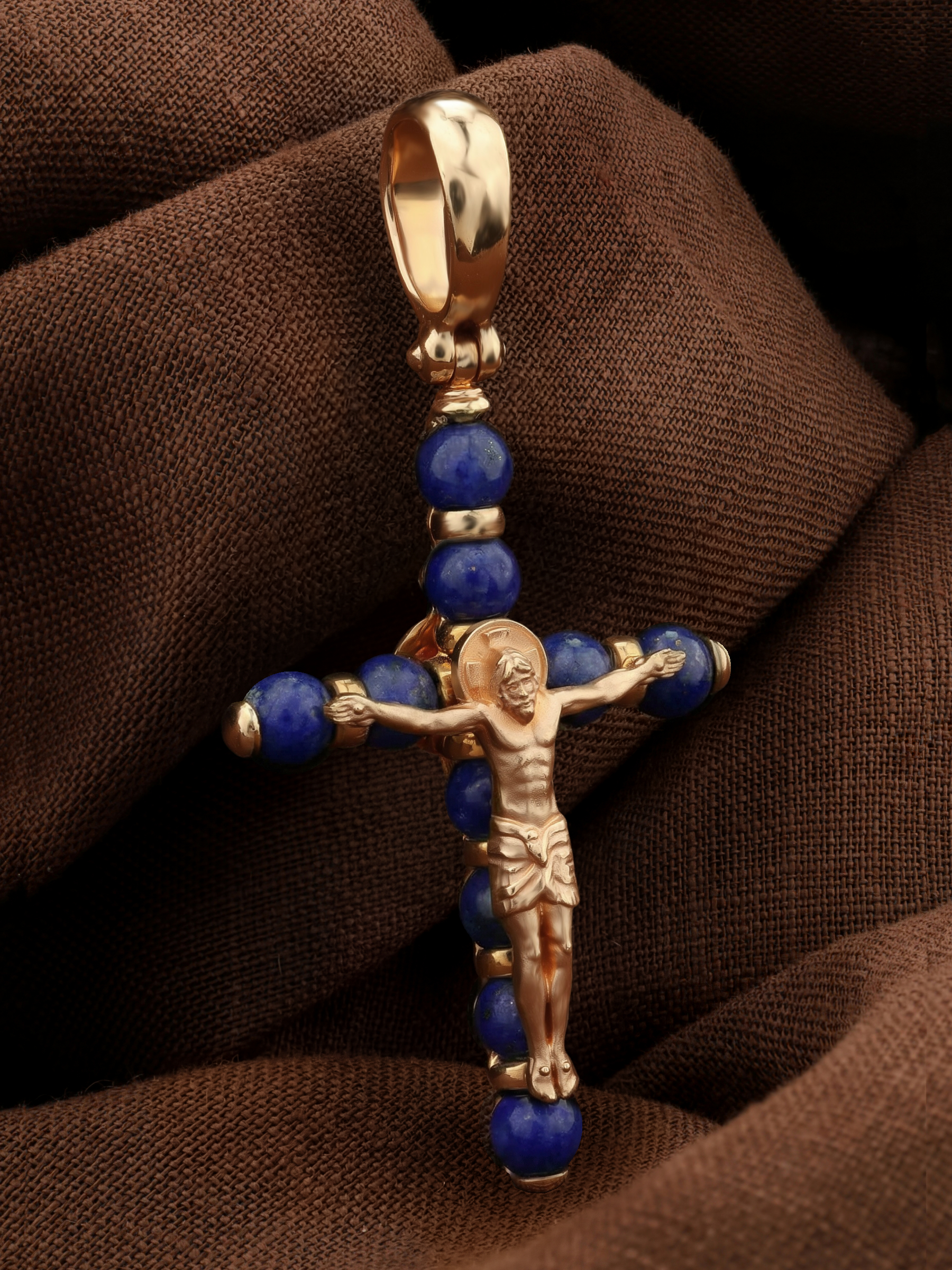 Крест из золота c лазуритом