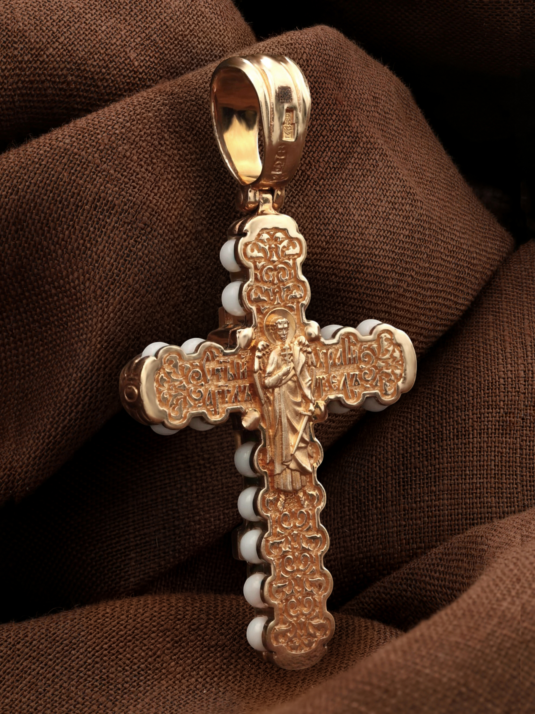 Крест из золота c кахолонгом