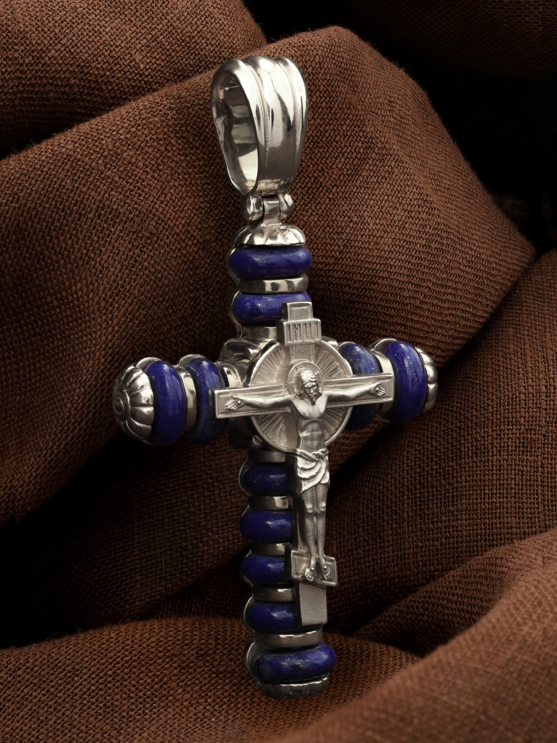 На лицевой стороне креста изображено Распятие Господа и Спасителя нашего Иисуса Христа, отдавшего Себя на смерть для искупления грехов мира. Крест является символом жертвенной любви Всеблагого Бога к падшим людям, всепобеждающим духовным оружием христиан, основанием и средоточием церковной жизни. Над вершиной Распятия помещена надпись «Царь Славы». На верхней перекладине расположена надпись «IНЦI». Она символизирует титло — табличку, на которой, согласно Евангелию, было начертано: Иисус Назорей, Царь Иудейский. Надпись «IC» «ХC»», означает Иисус Христос, помещаются на разных сторонах поперечной перекладины креста. Ниже помещена надпись «НИКА», что означает «победитель».