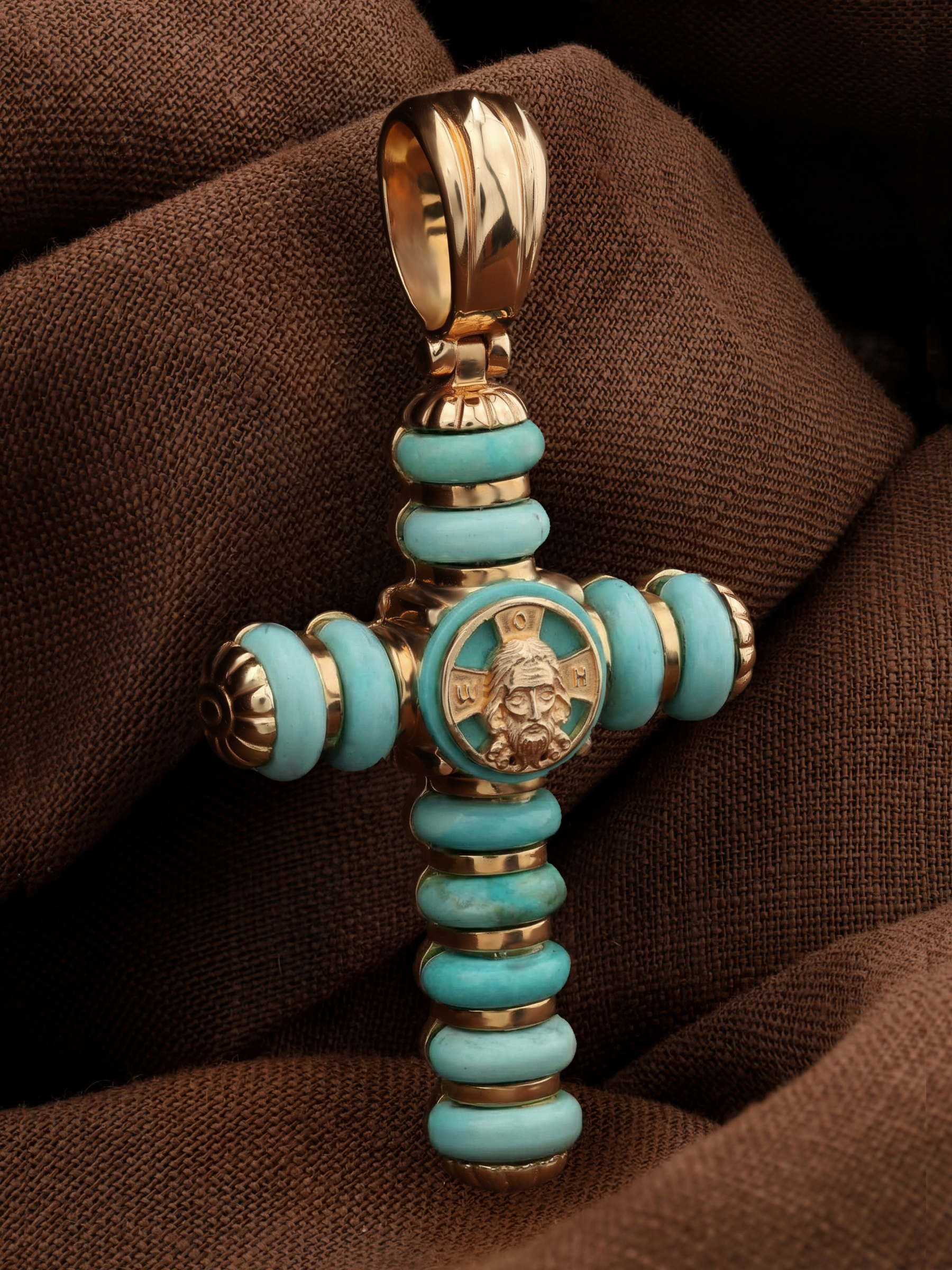 Крест из золота c бирюзой