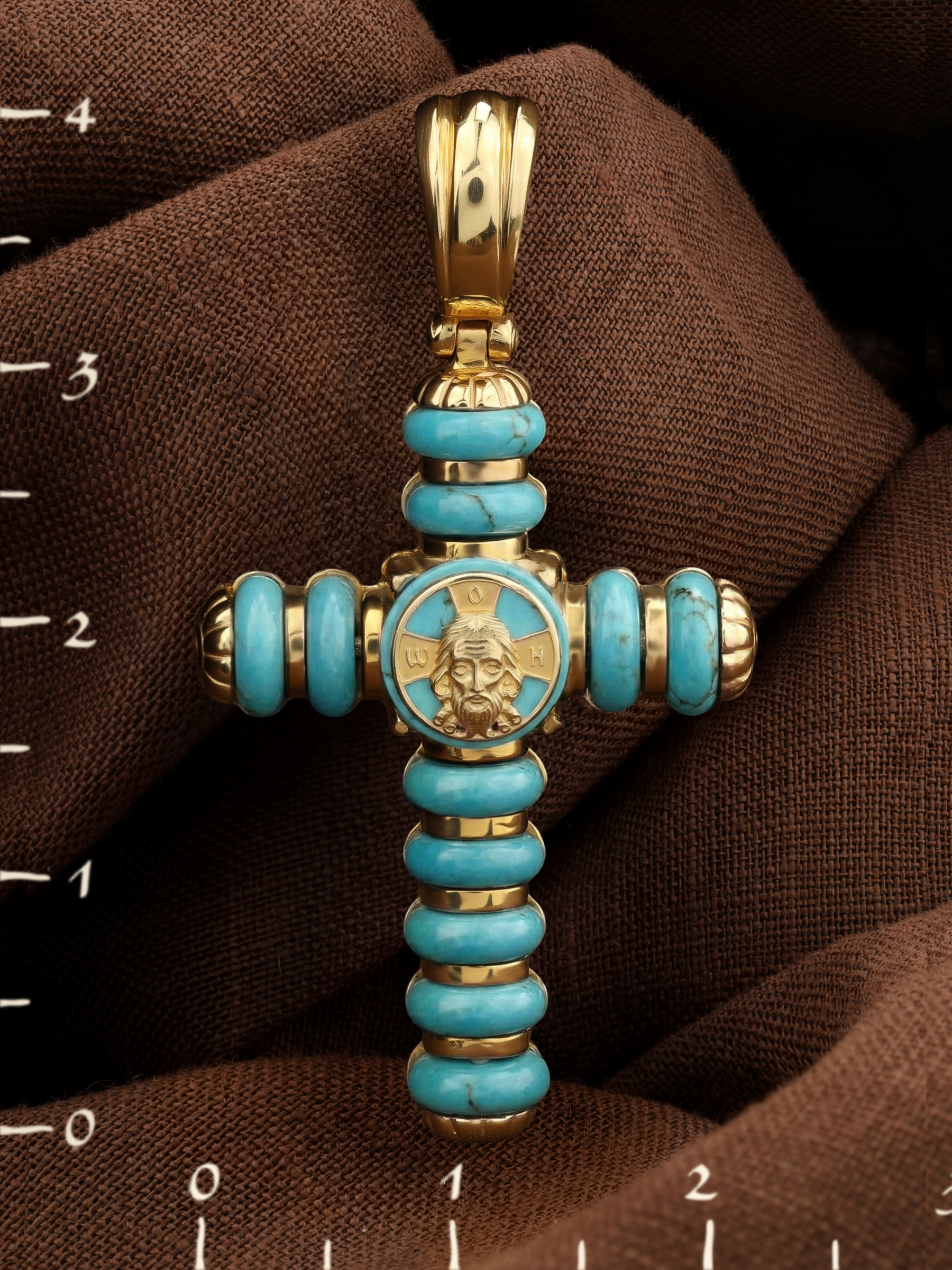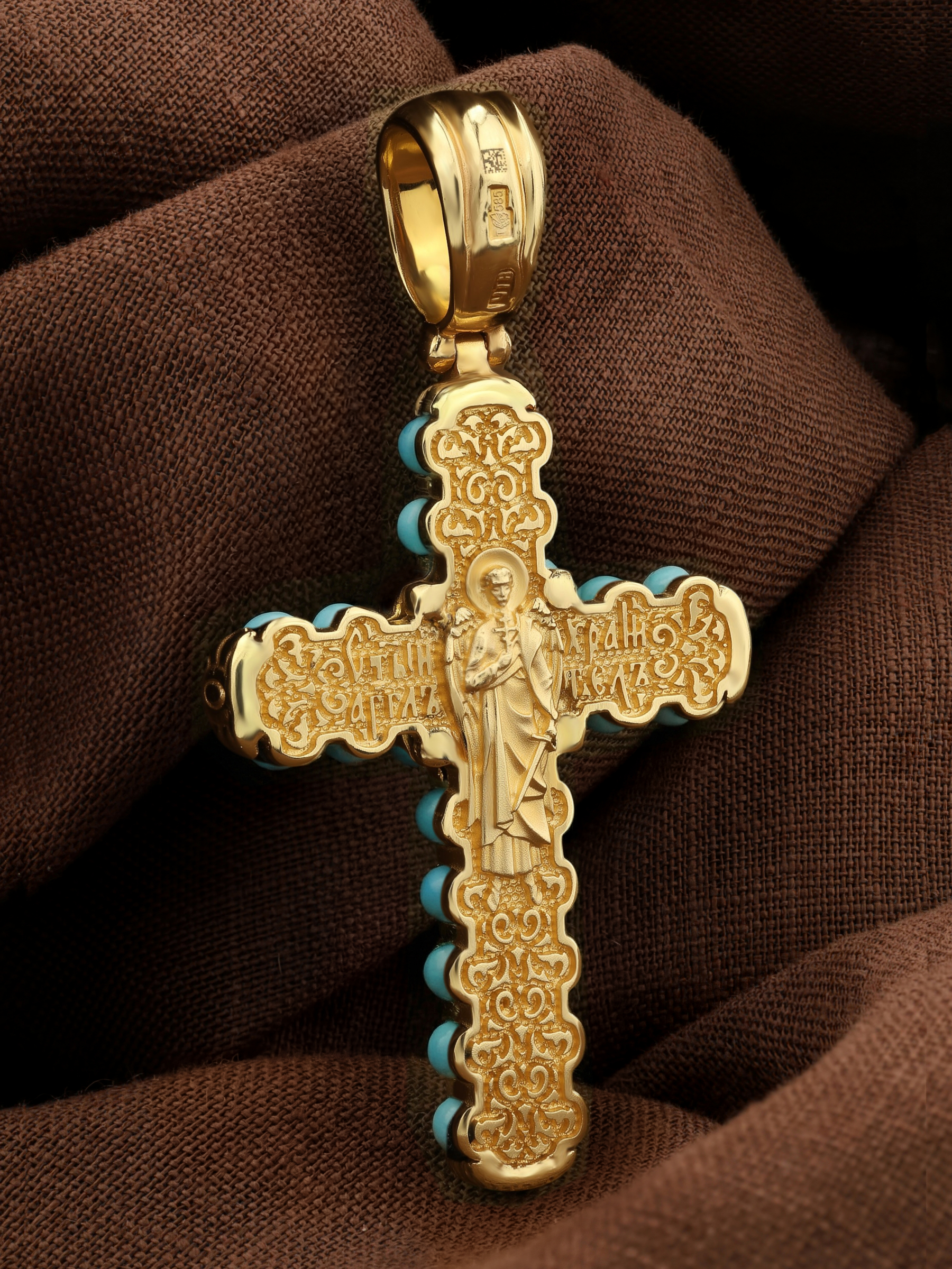 Крест из лимонного золота c бирюзой