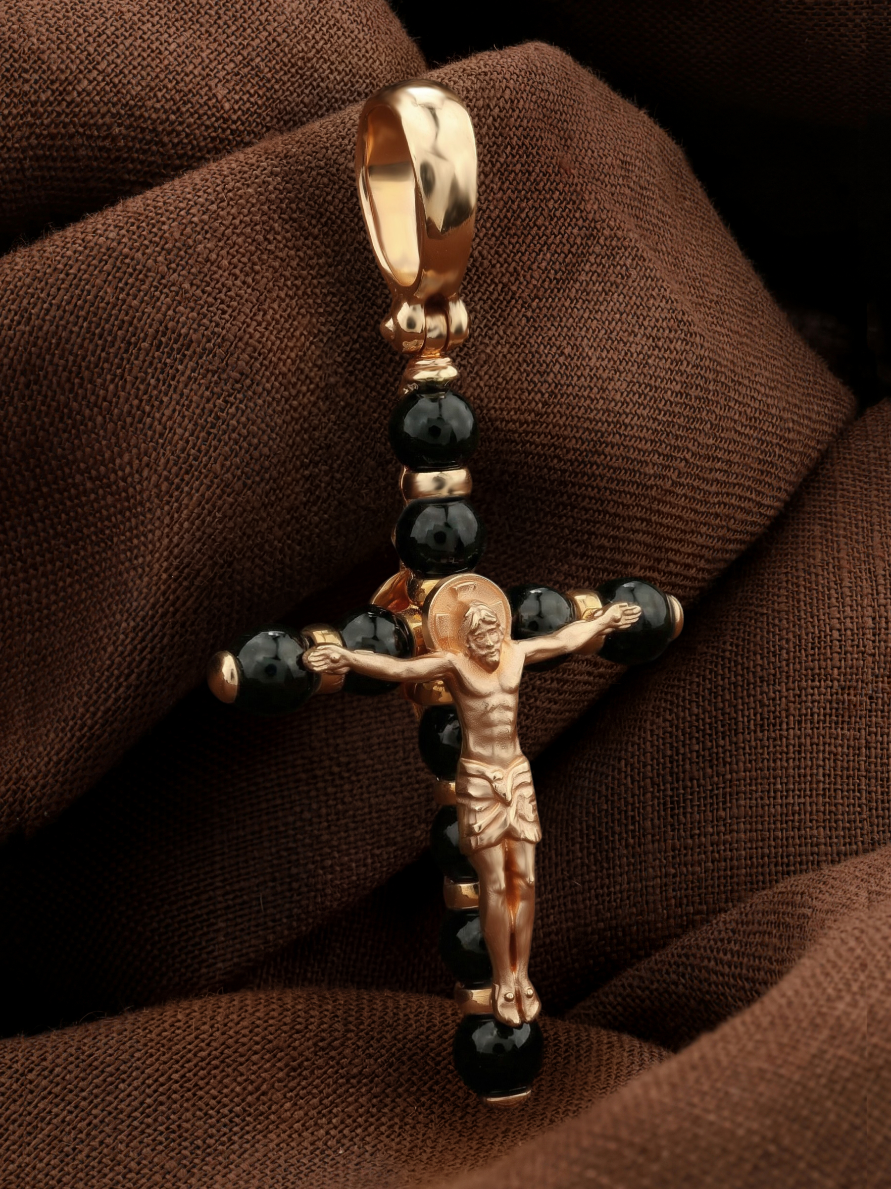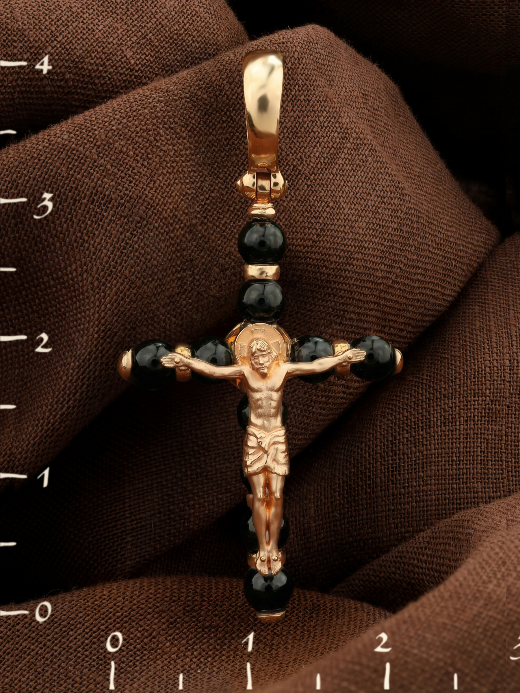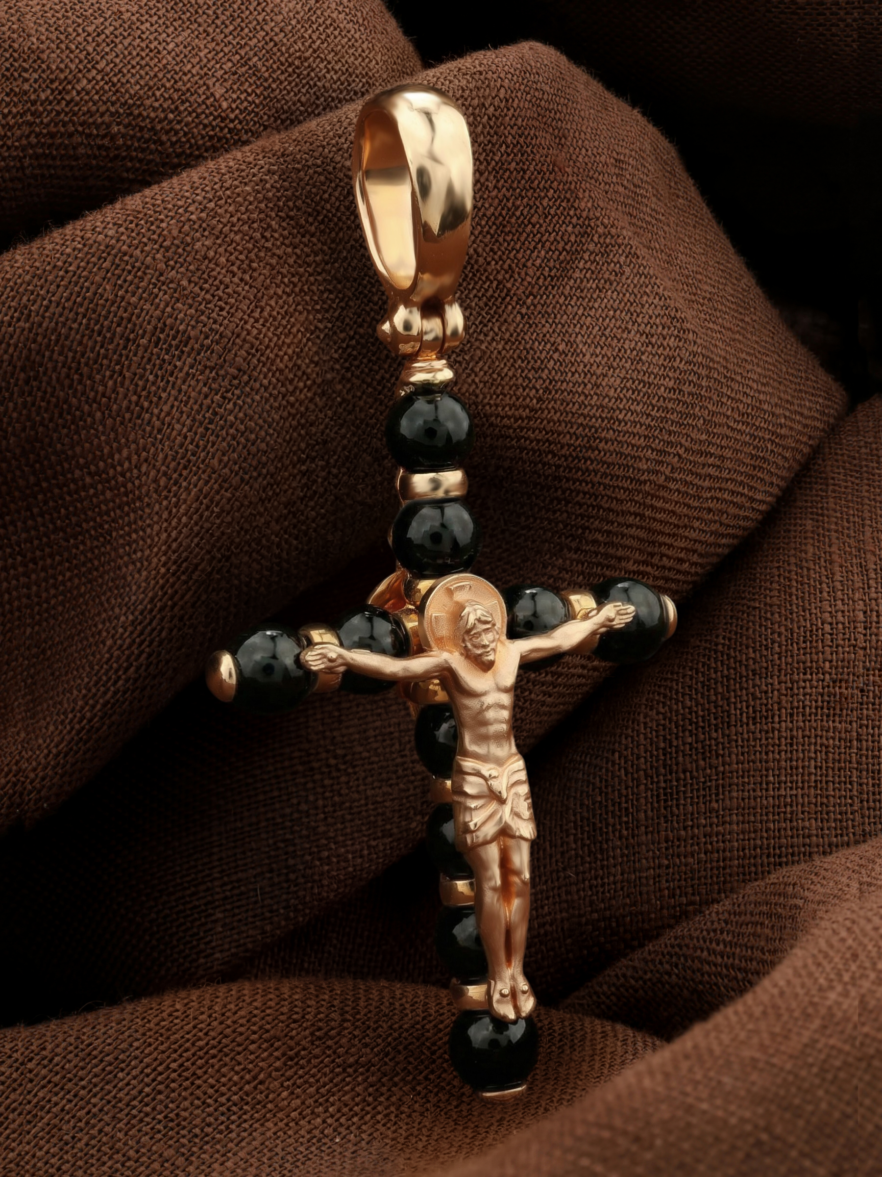 На лицевой стороне креста изображено Распятие Господа и Спасителя нашего Иисуса Христа. Своими крестными страданиями Господь смыл наши грехи, покрыл наш долг перед Богом или, на языке Писания, нас «искупил». В Голгофе сокрыта непостижимая тайна бесконечной правды и любви Бога. Крест стал символом победы добра над злом, жизни над смертью, напоминанием бесконечной Божьей любви, предметом радости. Воплотившийся Сын Божий Своею кровью освятил крест и сделал его проводником Своей благодати, источником освящения верующих.