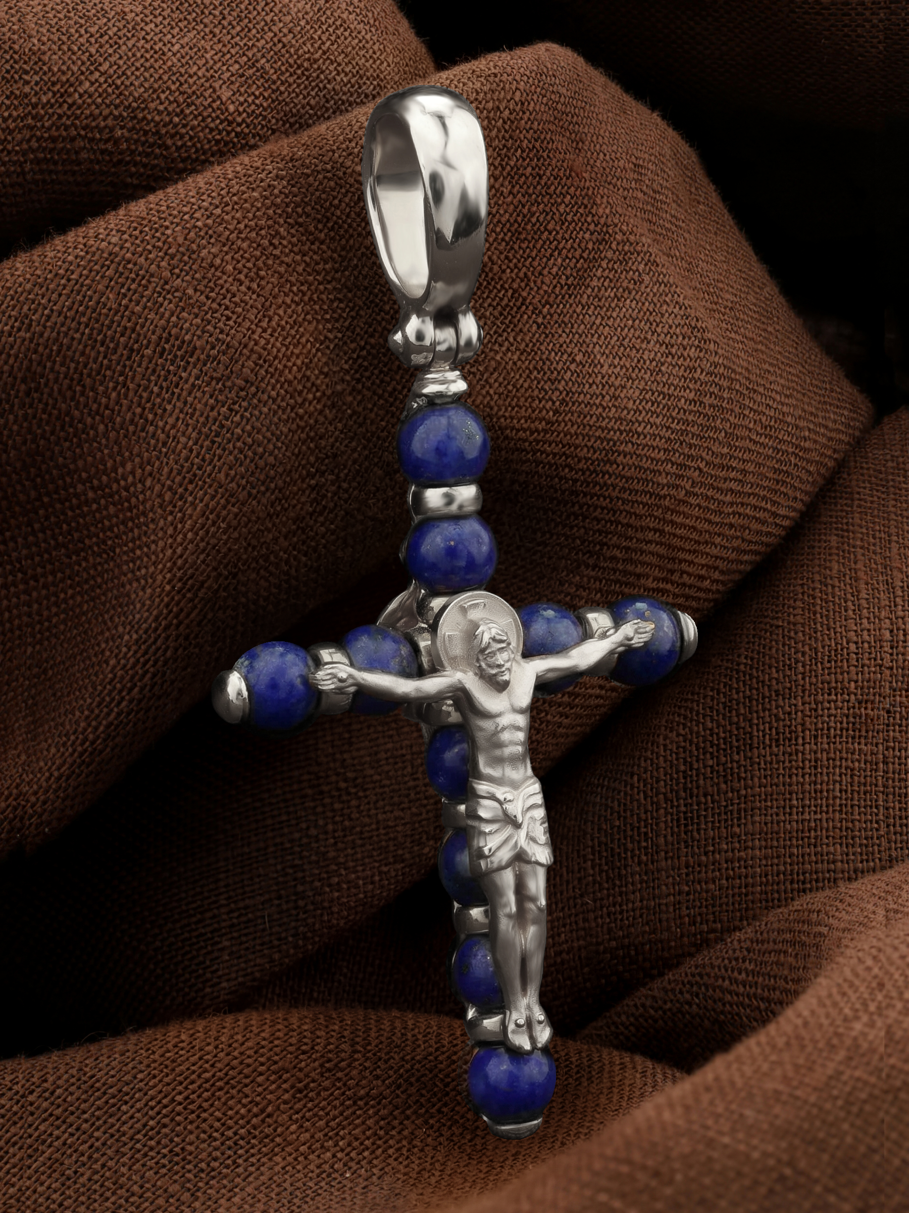 Крест из белого золота c лазуритом