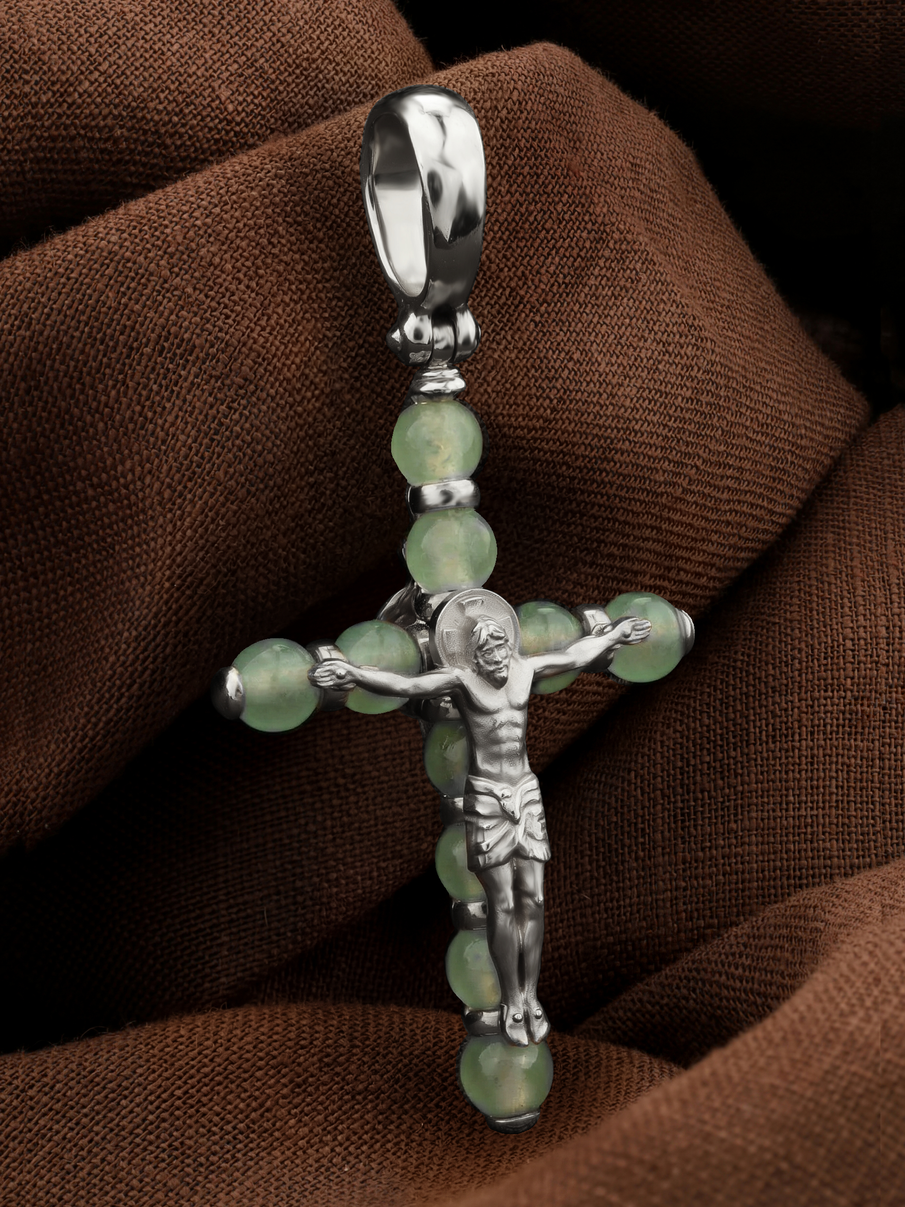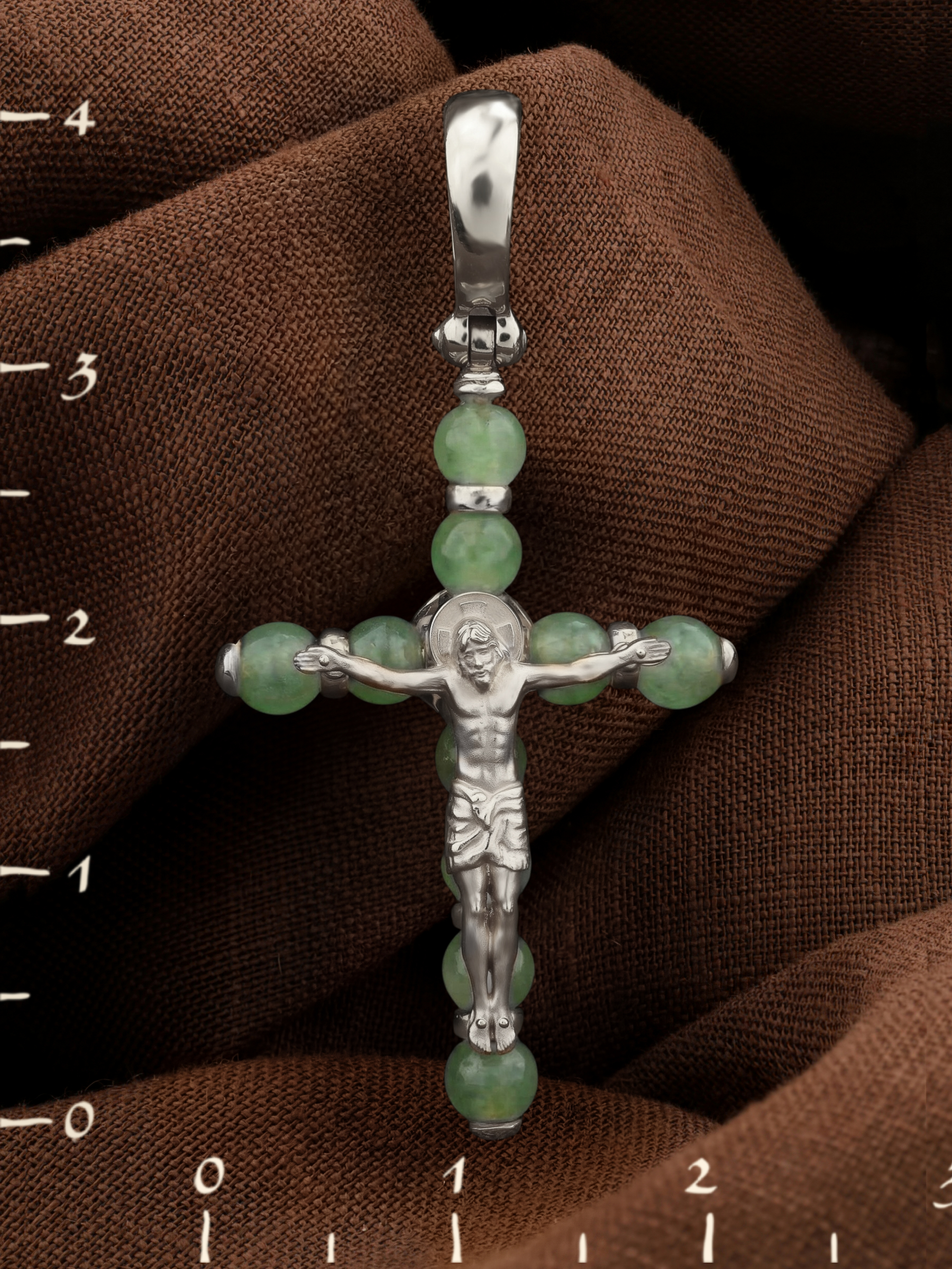Крест из белого золота c нефритом