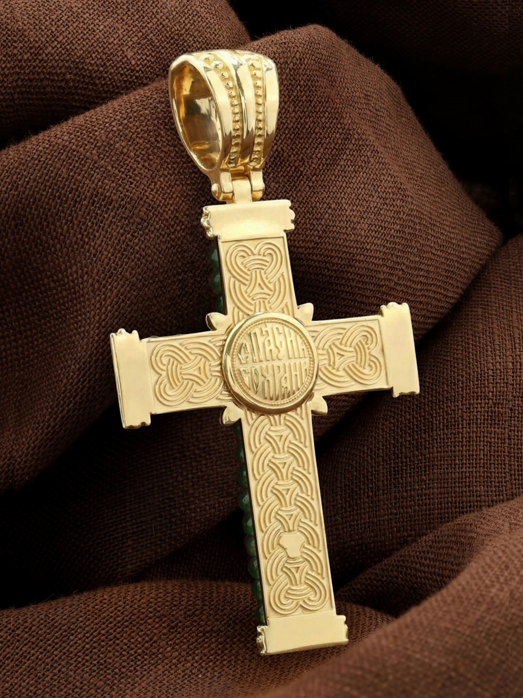 В центрально части оборотной стороны креста написана молитва: «Спаси и сохрани».