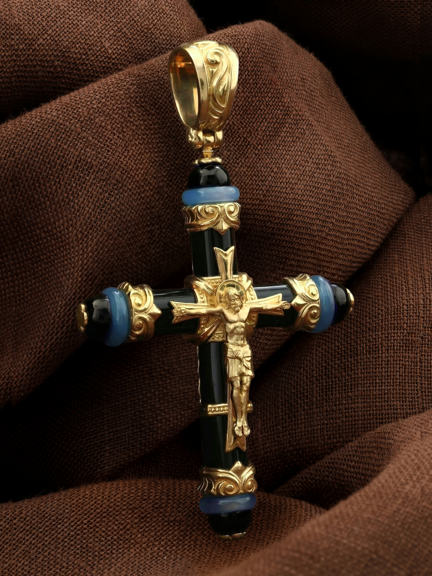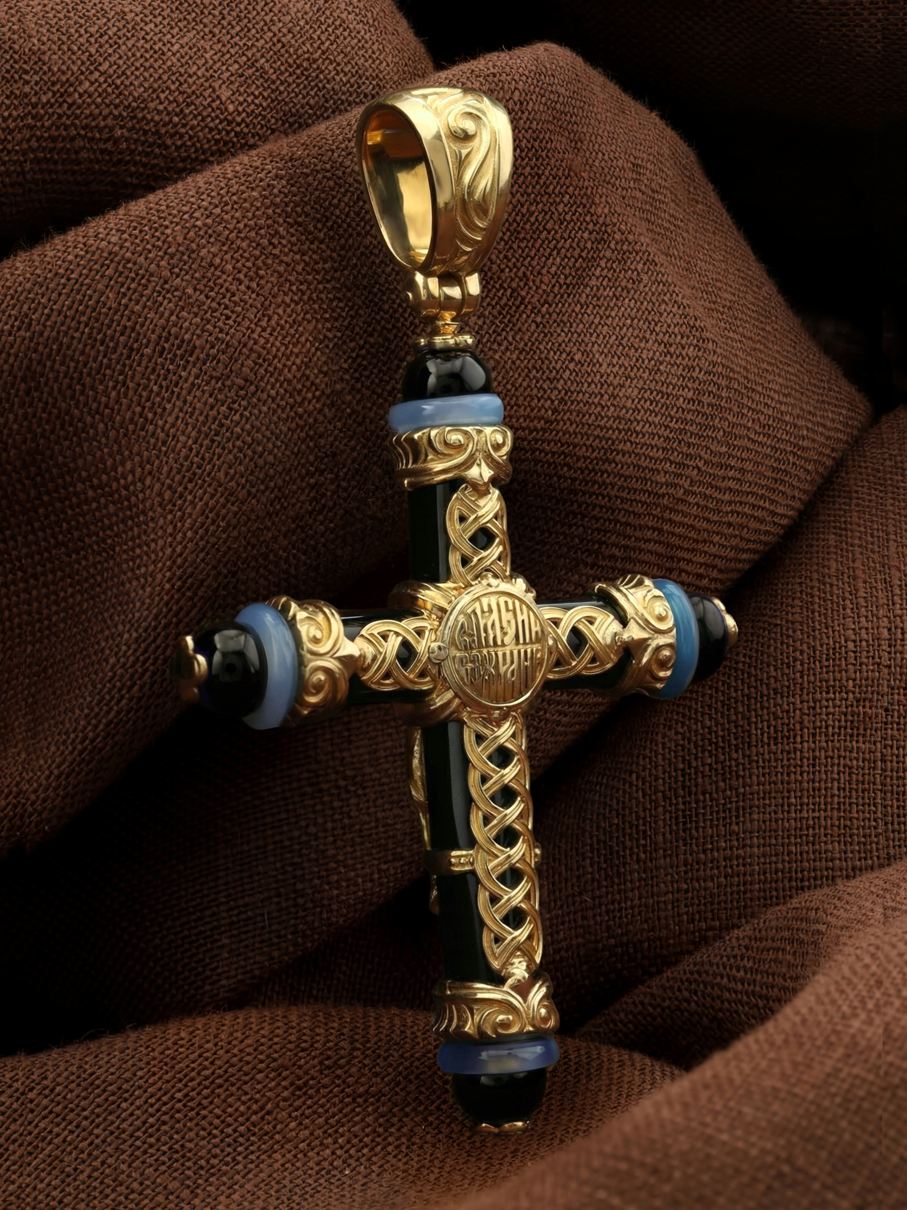 Крест из лимонного золота c ониксом и агатом
