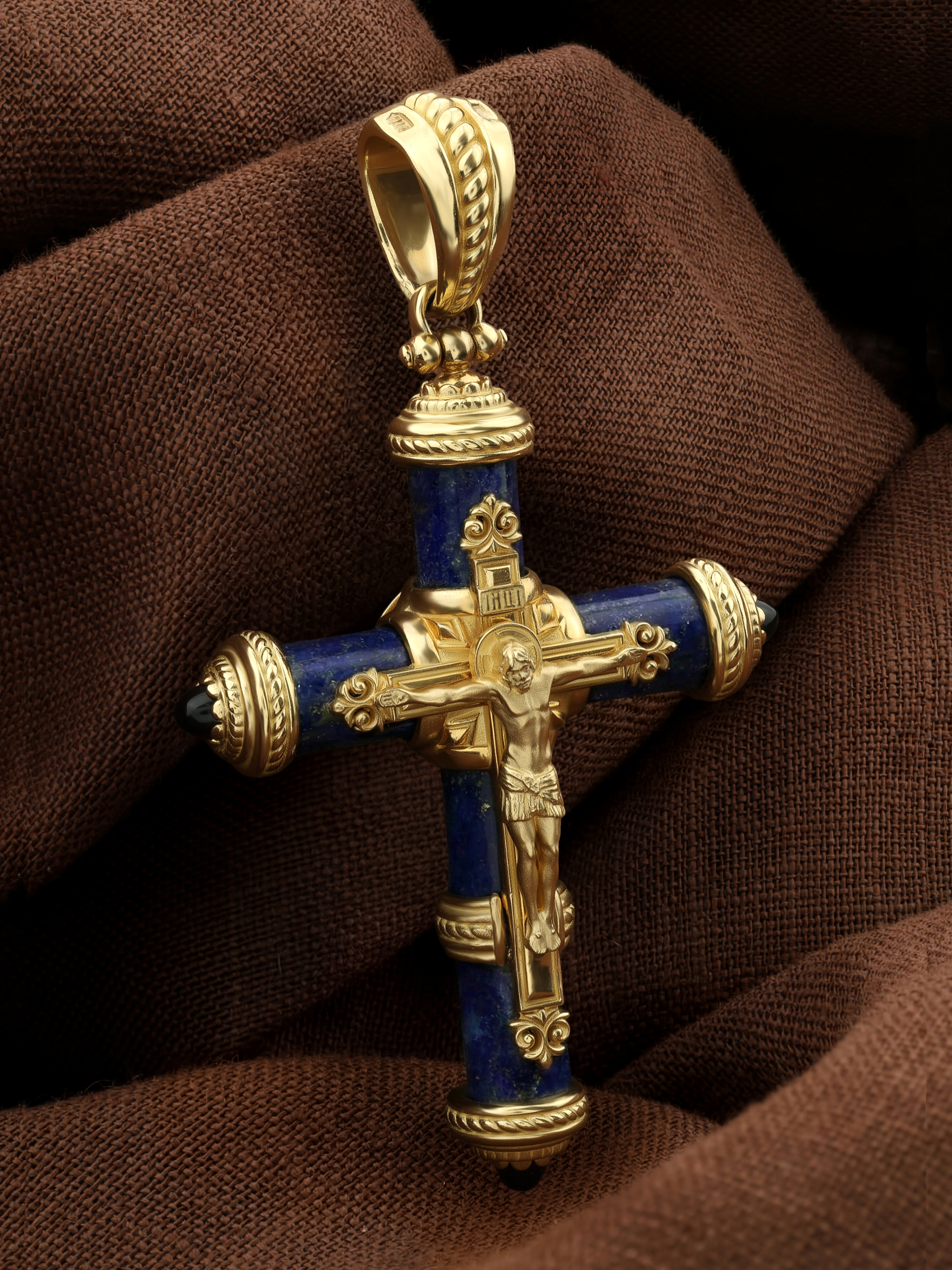 Крест из лимонного золота c ониксом и лазуритом