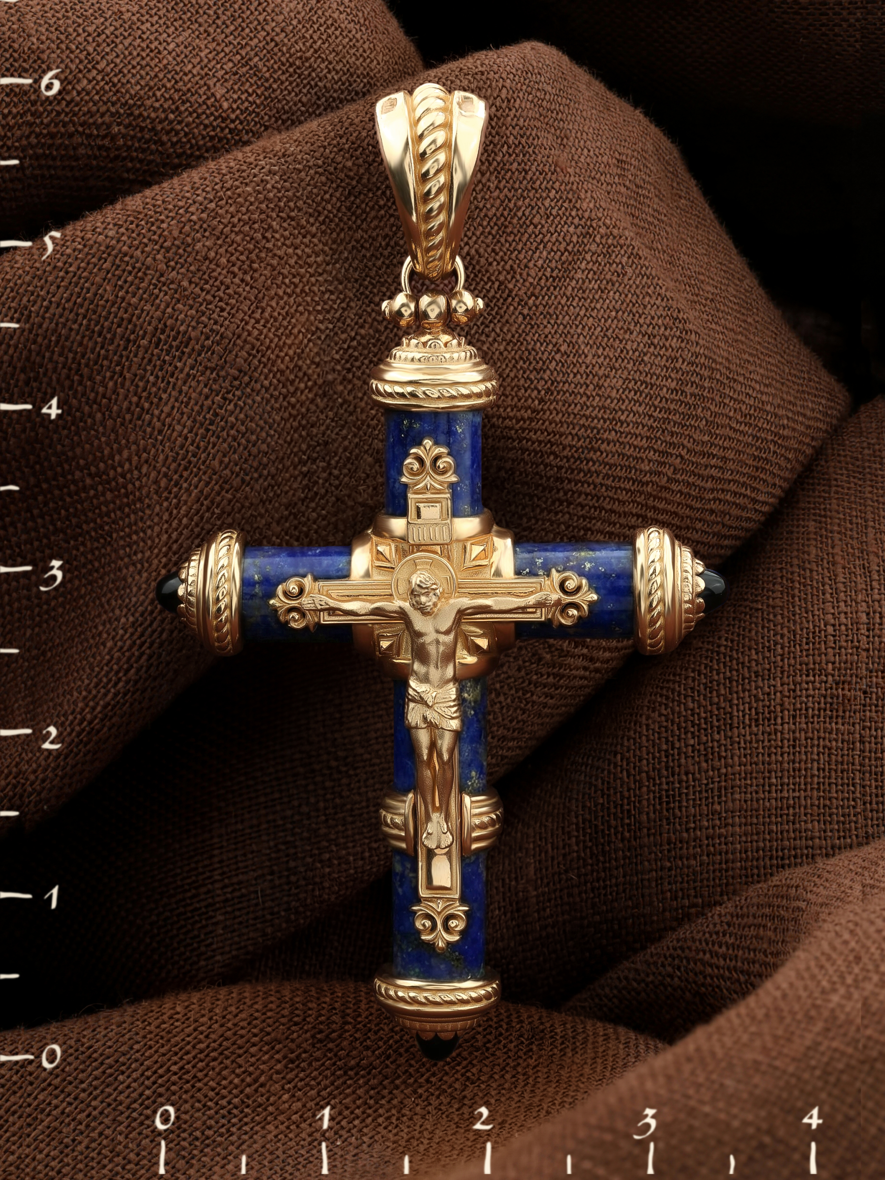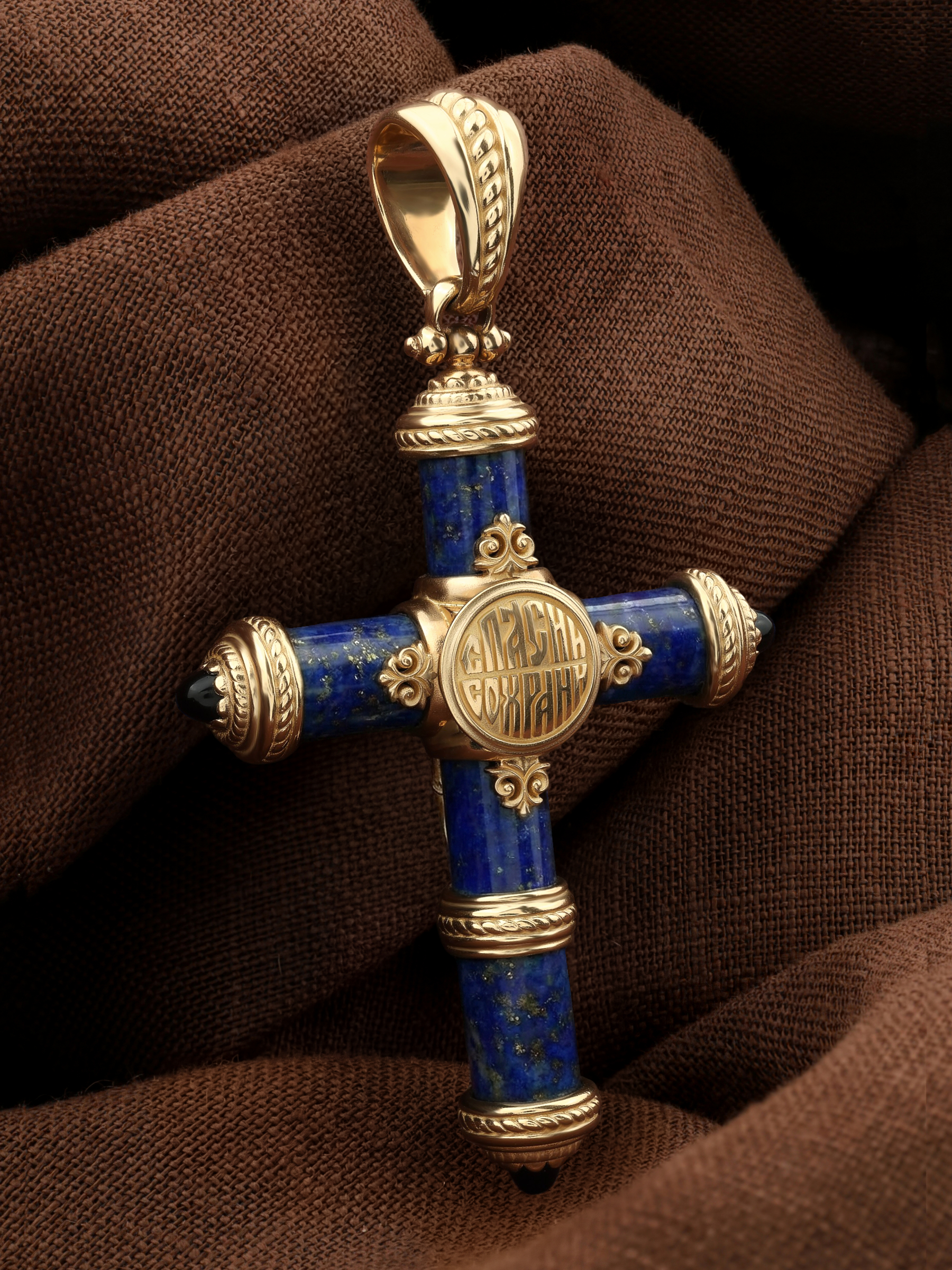 Крест из золота c ониксом и лазуритом