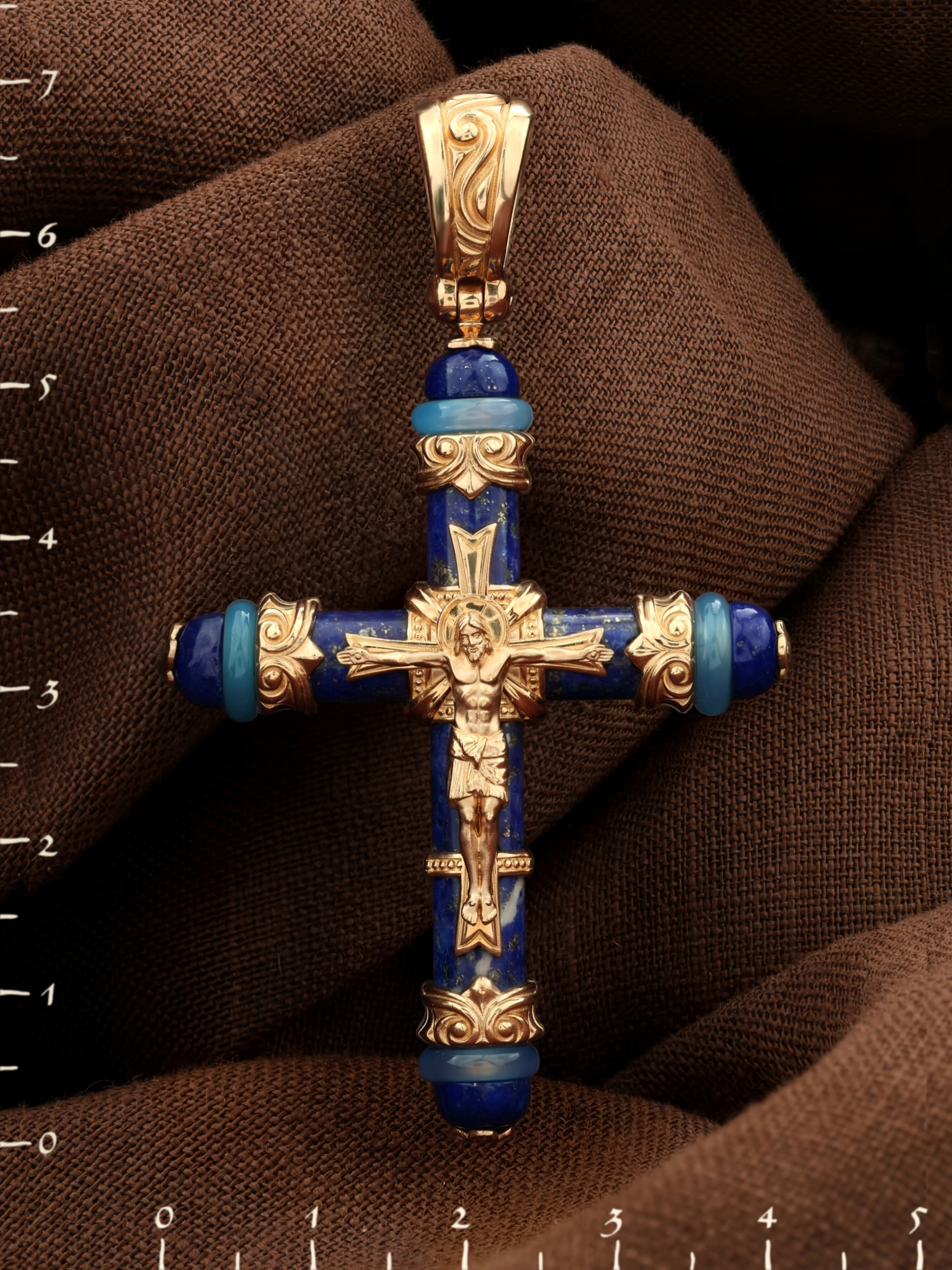 Крест из золота c агатом и лазуритом