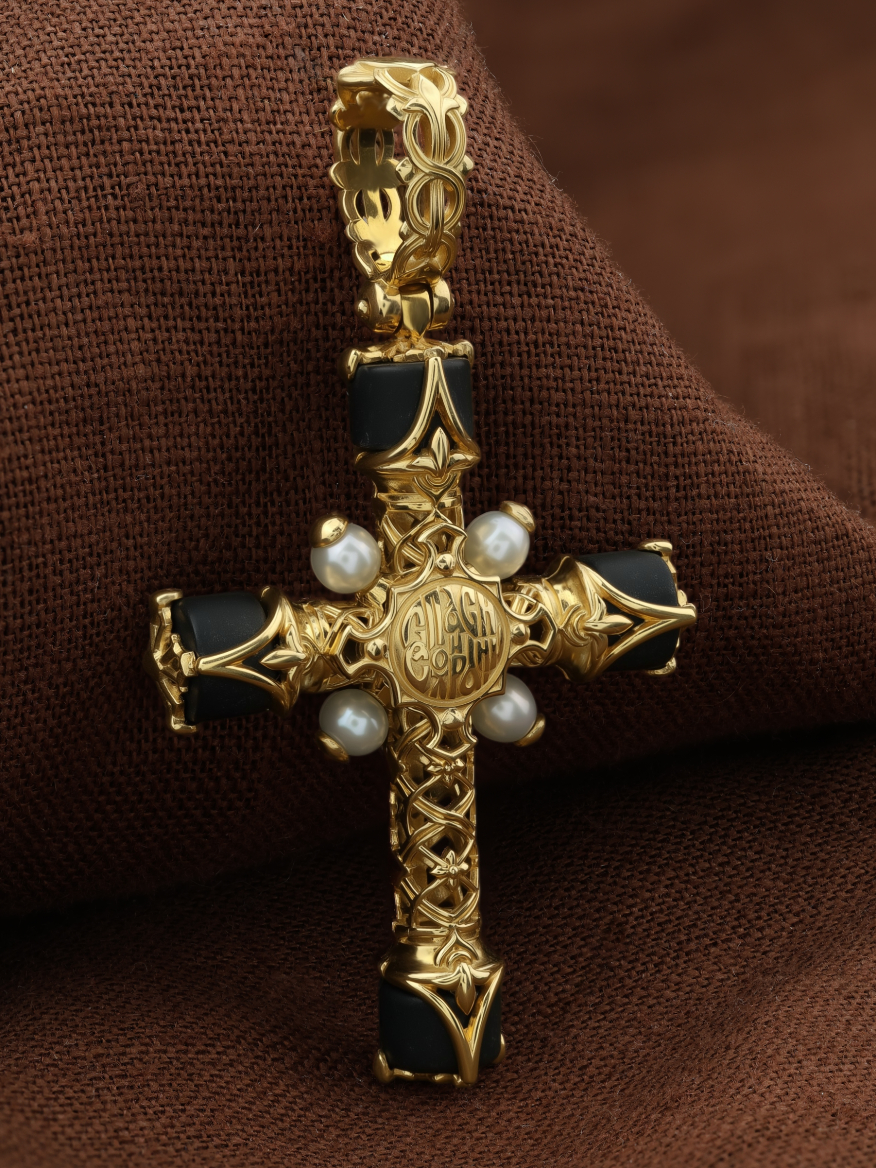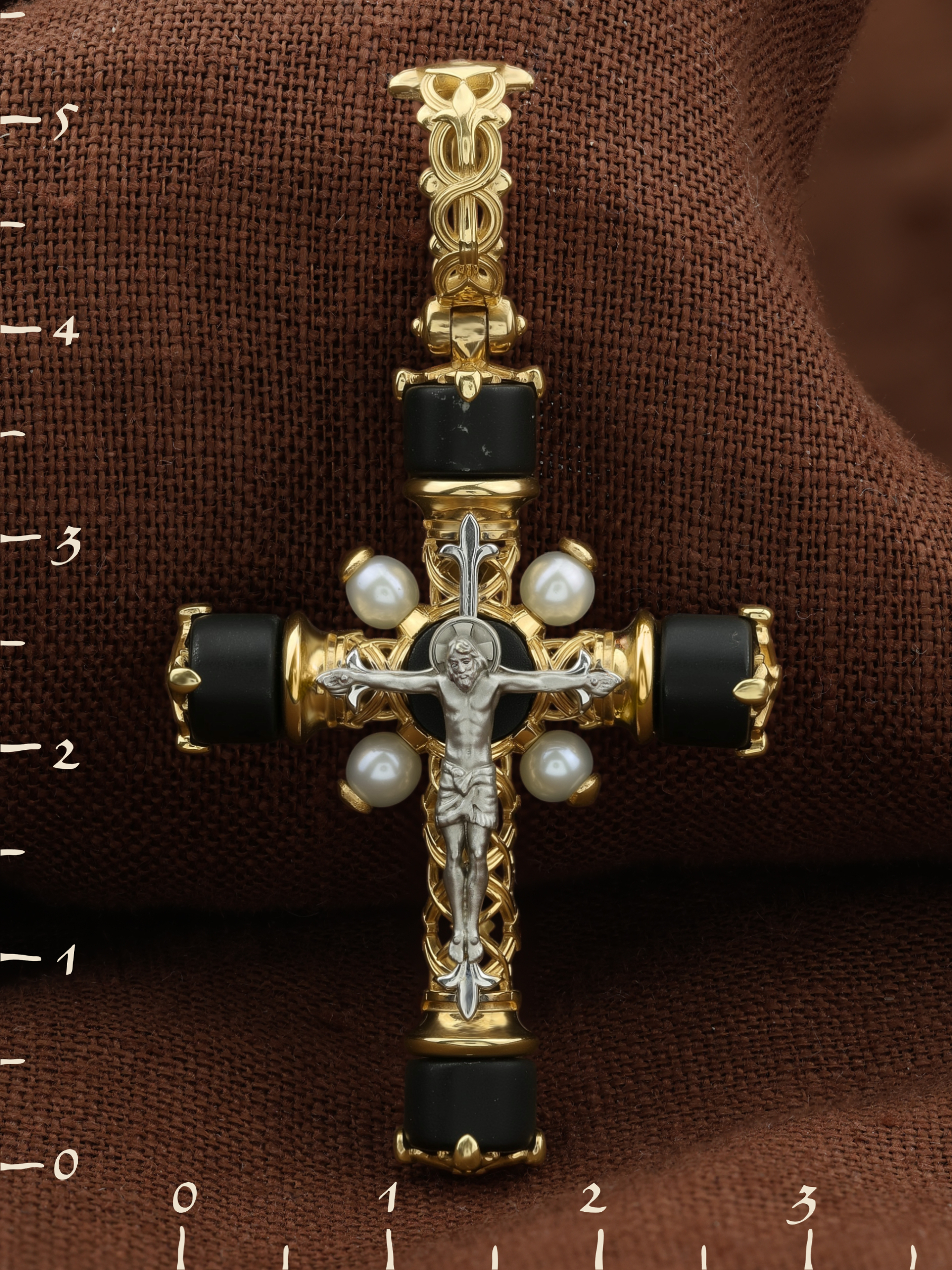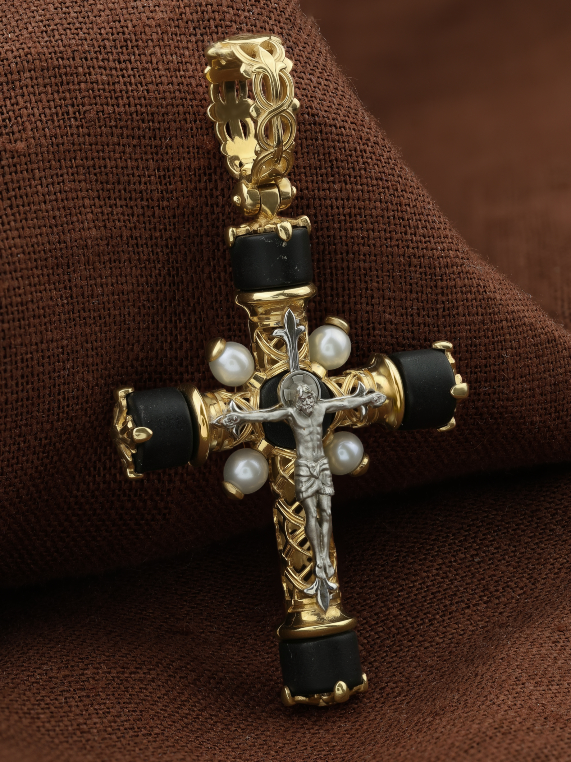 Крест из лимонного золота c жемчугом и ониксом