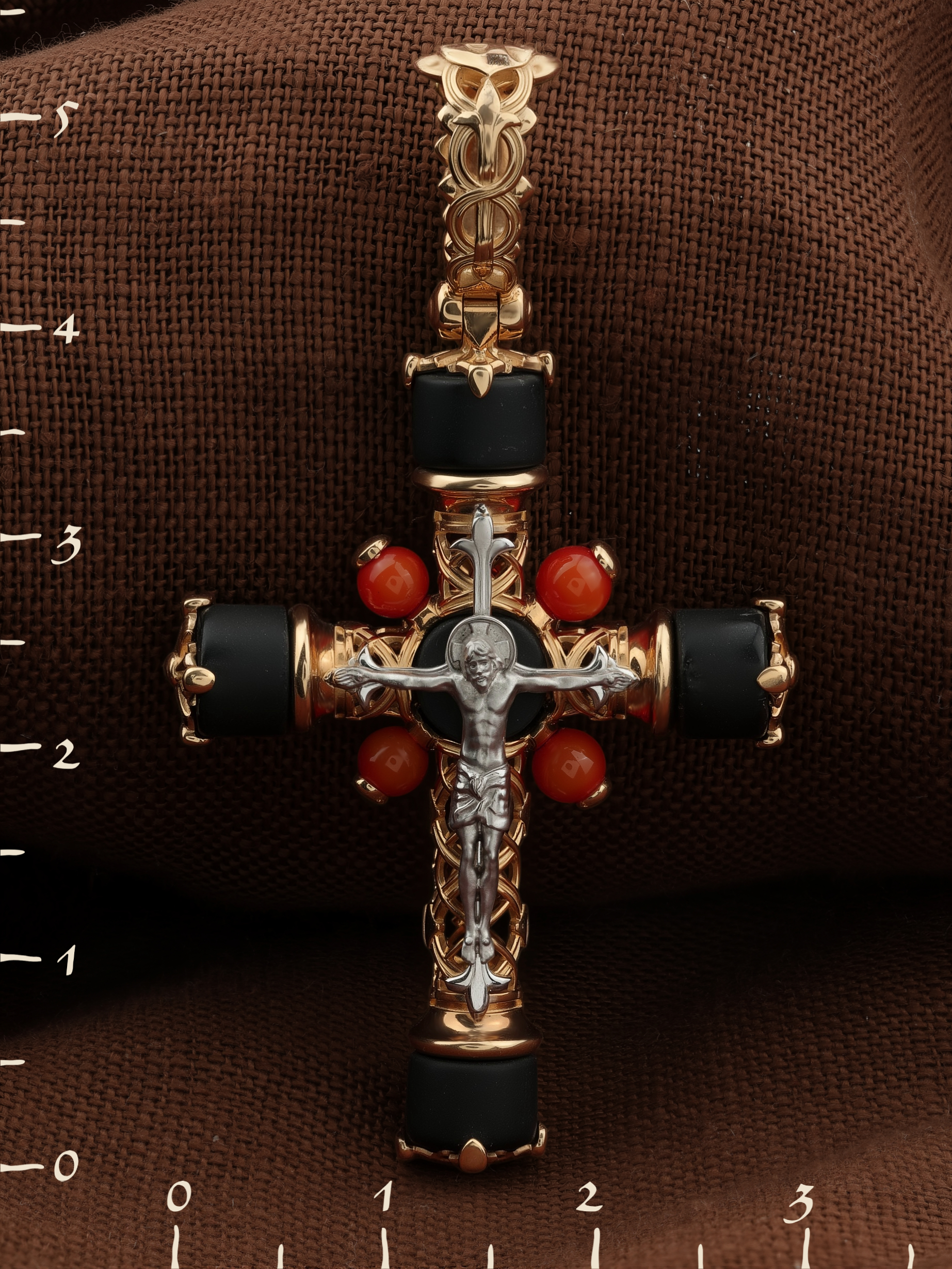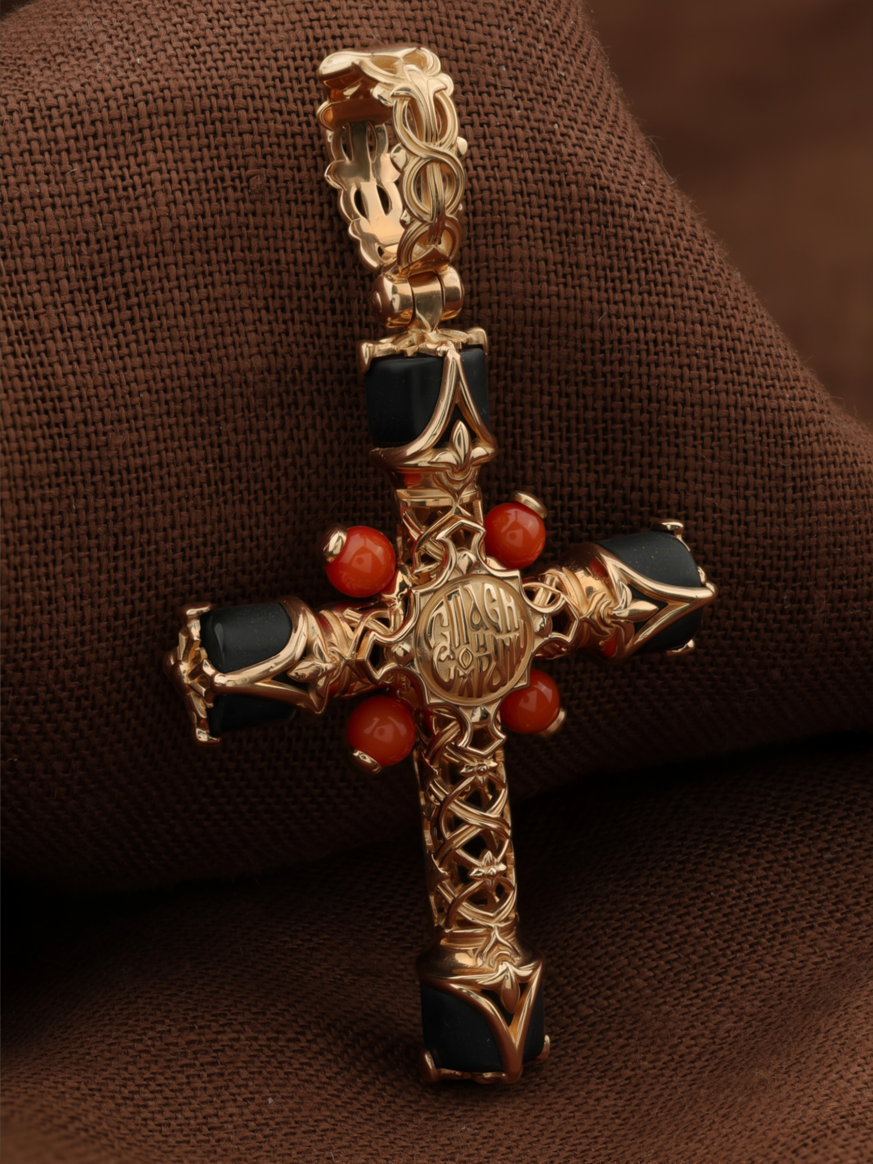 Крест из золота c ониксом и кораллом