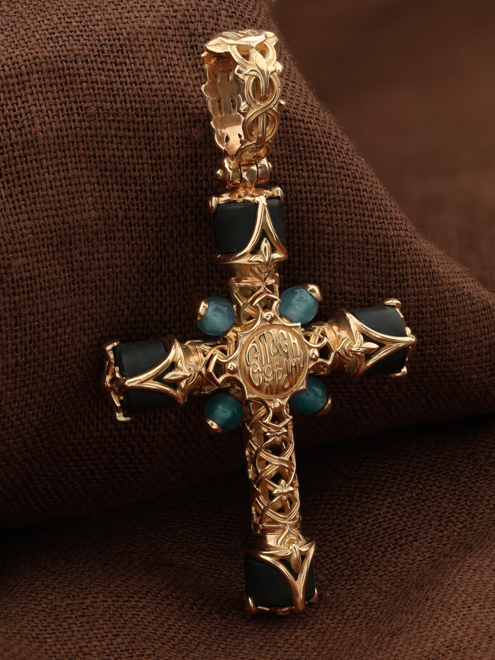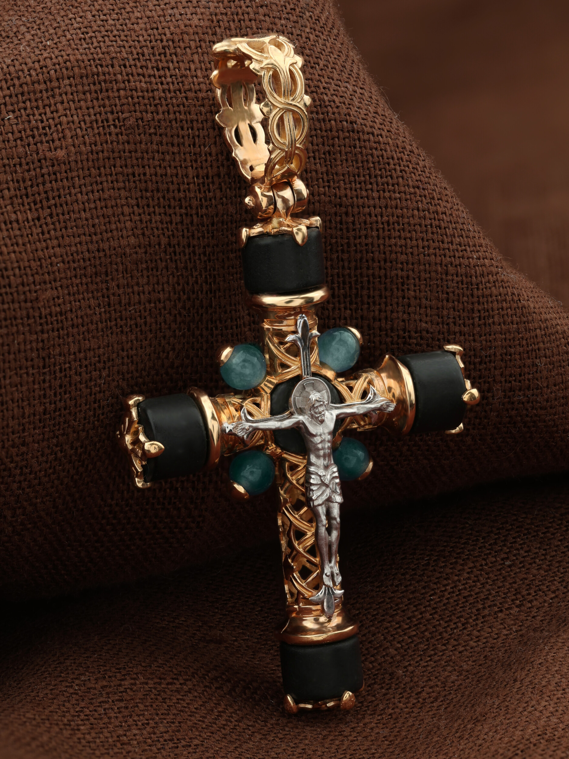 Крест из золота c ониксом и жадеитом