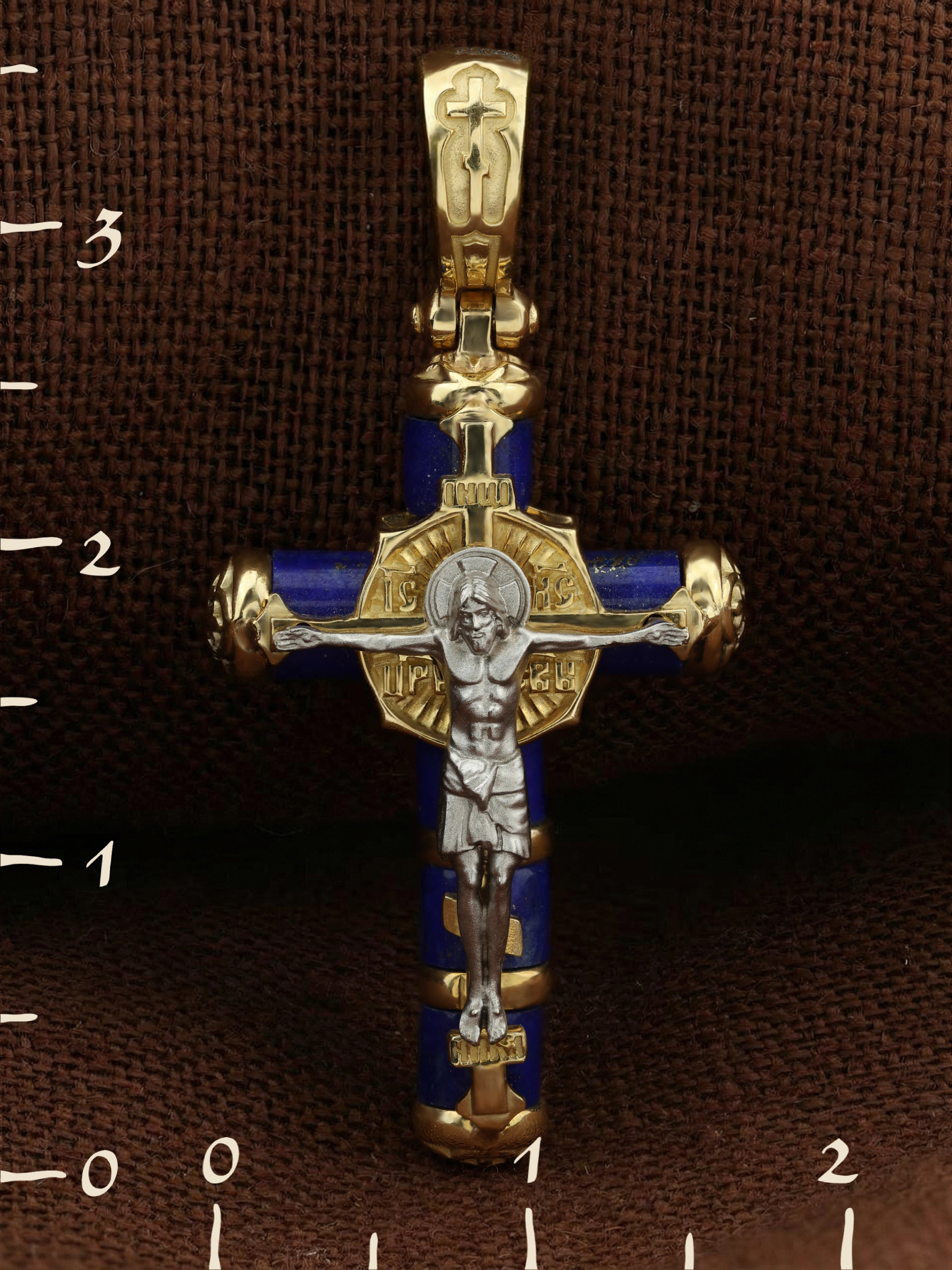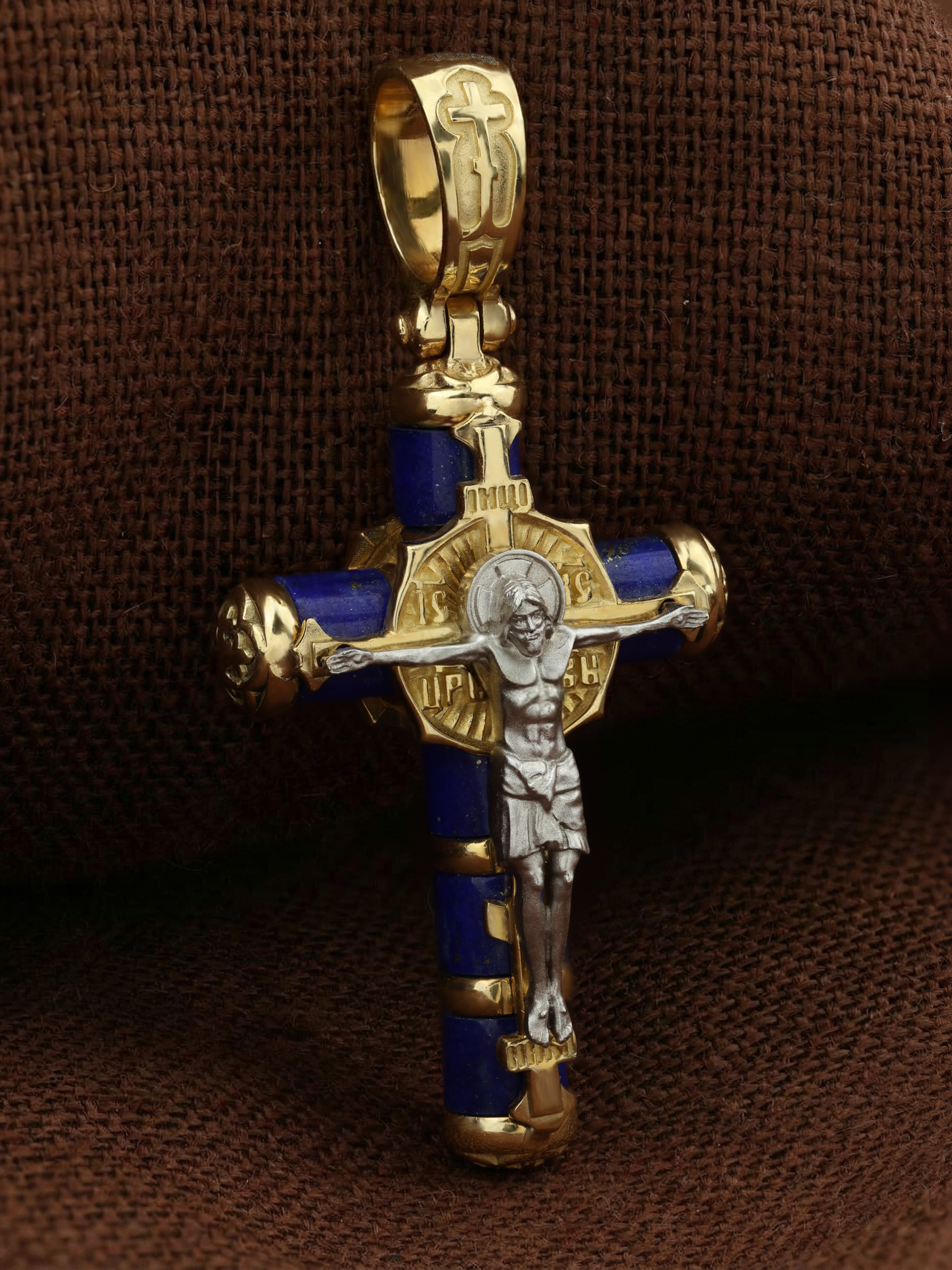 Крест из лимонного золота c лазуритом
