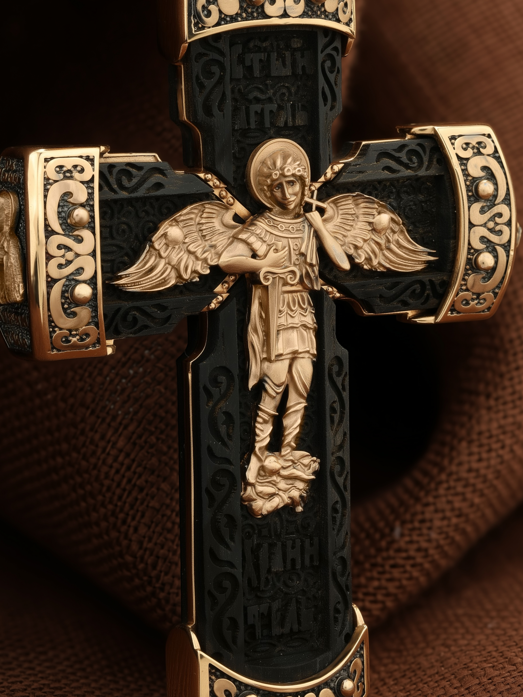 Крест из золота c эбеновым деревом