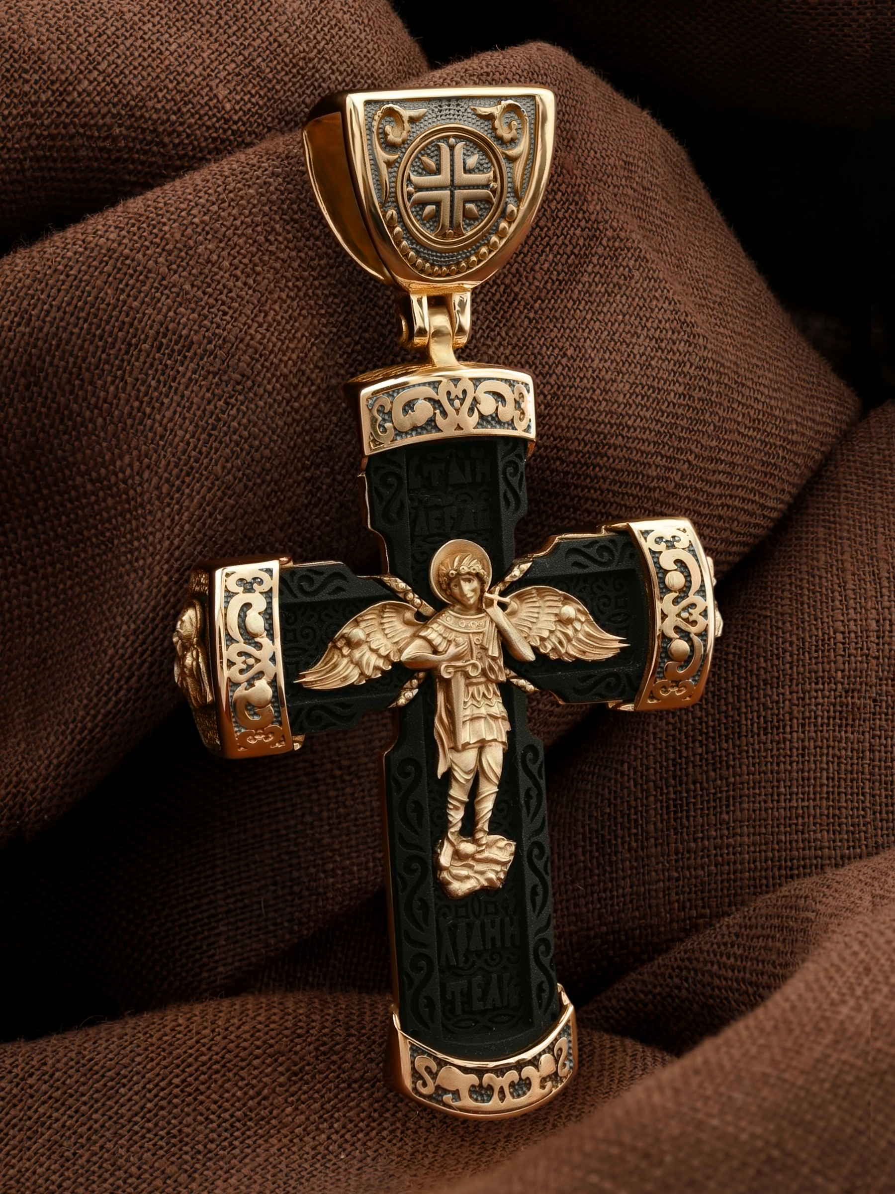 Крест из золота c эбеновым деревом