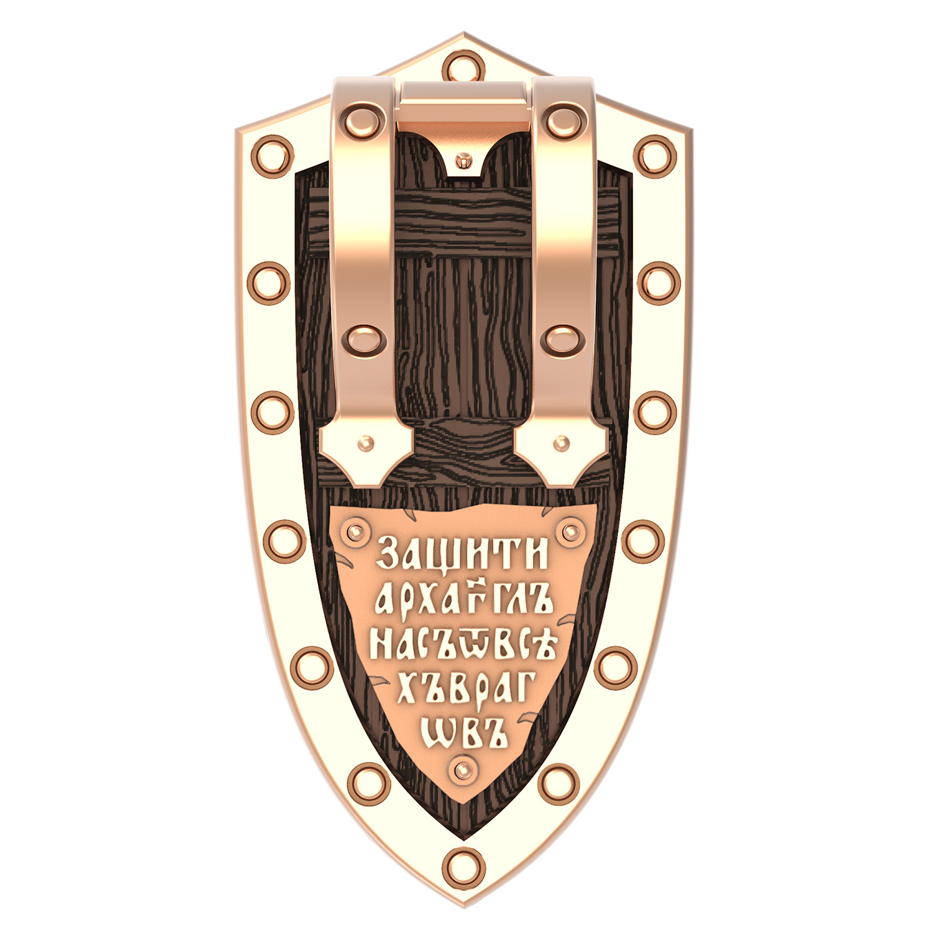 На оборотной стороне образка написаны слова молитвы: «Защити Архангел нас от всех врагов».