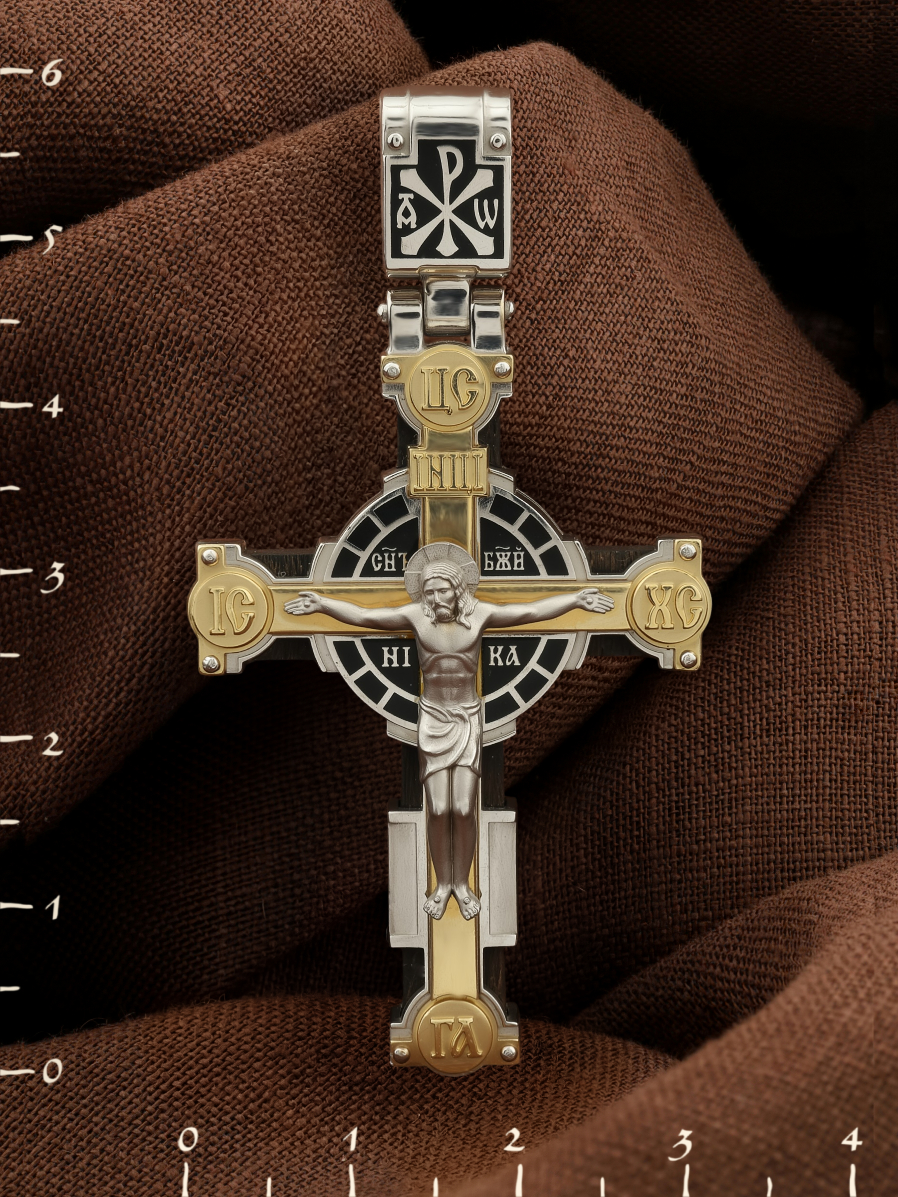 Крест из белого золота c эмалью и эбеновым деревом