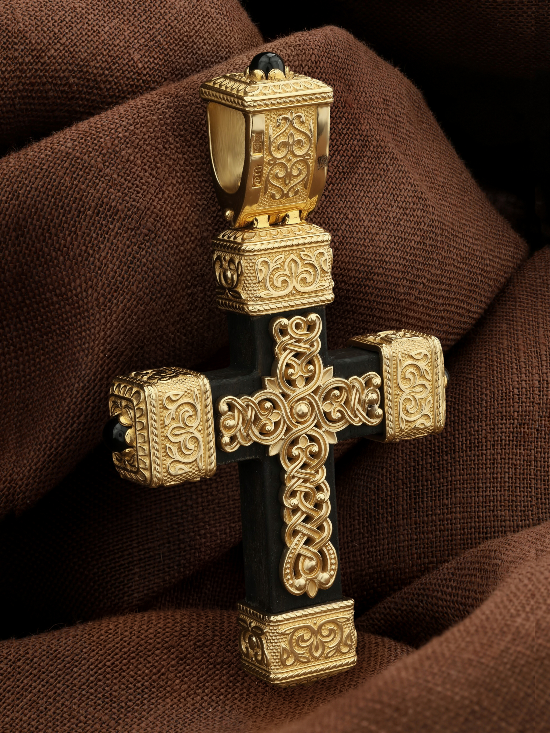 Крест из лимонного золота c эмалью, ониксом и эбеновым деревом