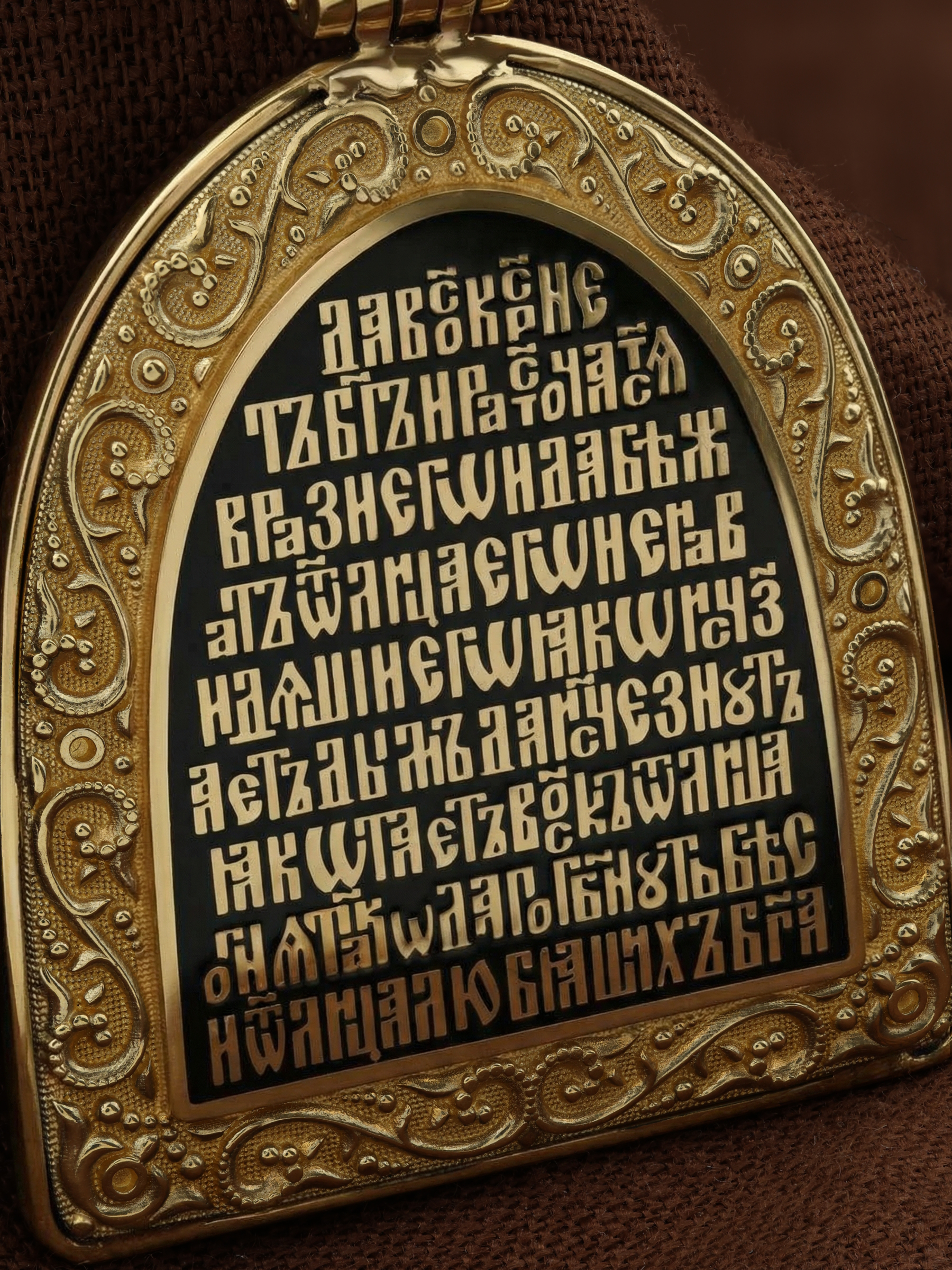 На обороте образка молитва Животворящему Кресту Господню «Да воскреснет Бог, и расточатся врази Его, и да бежат от лица Его ненавидящии Его. Яко исчезает дым, да исчезнут; яко тает воск от лица огня, тако да погибнут беси от лица любящих Бога»
