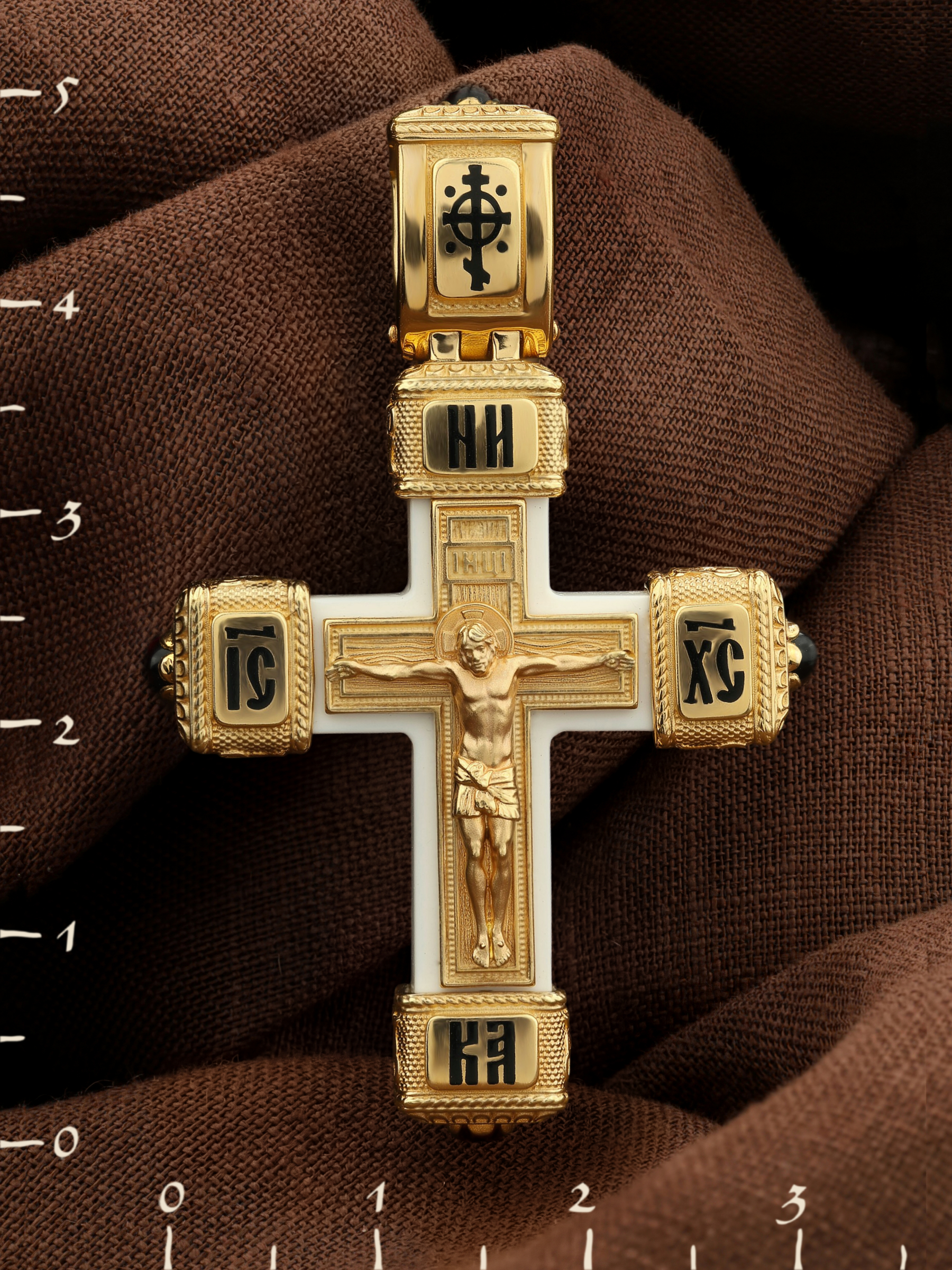Крест из лимонного золота c эмалью, ониксом и бивнем мамонта