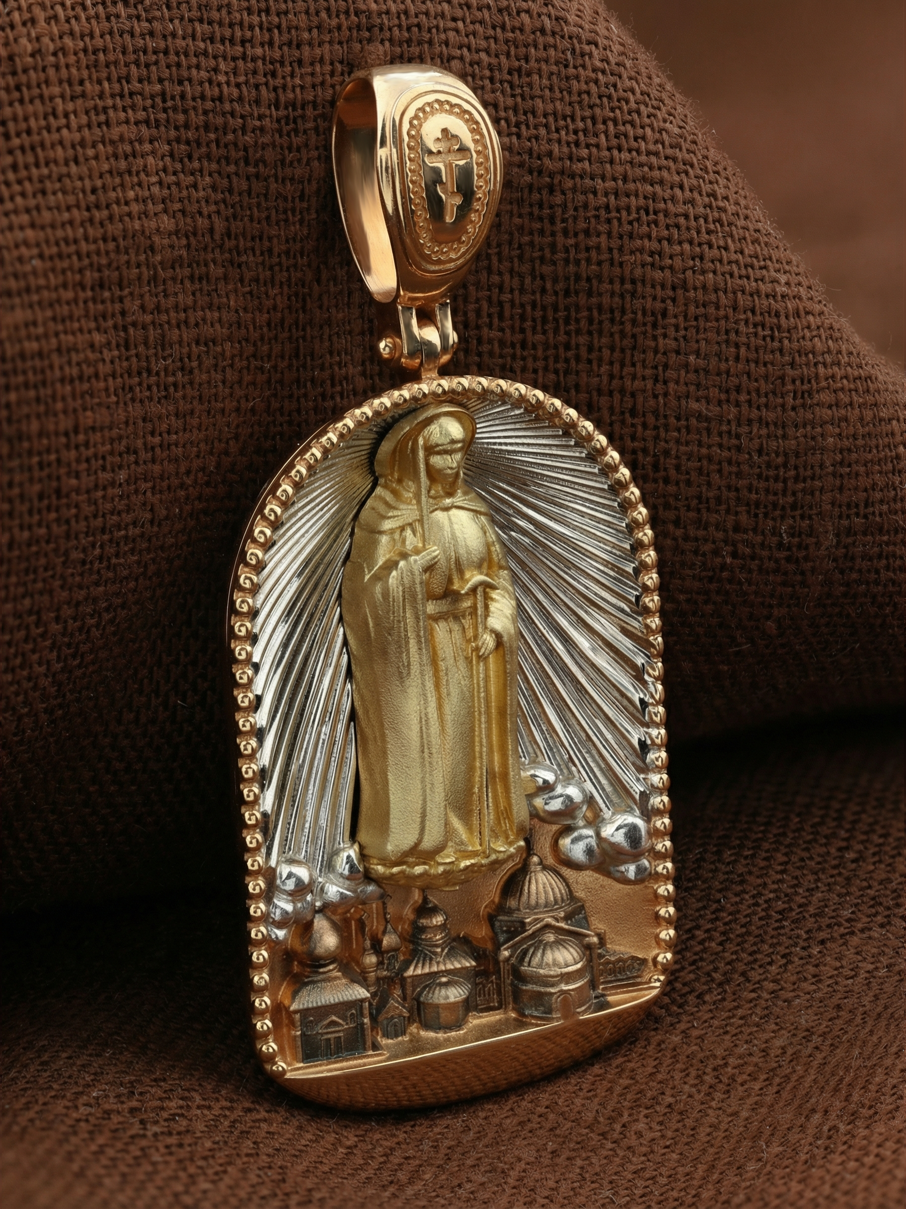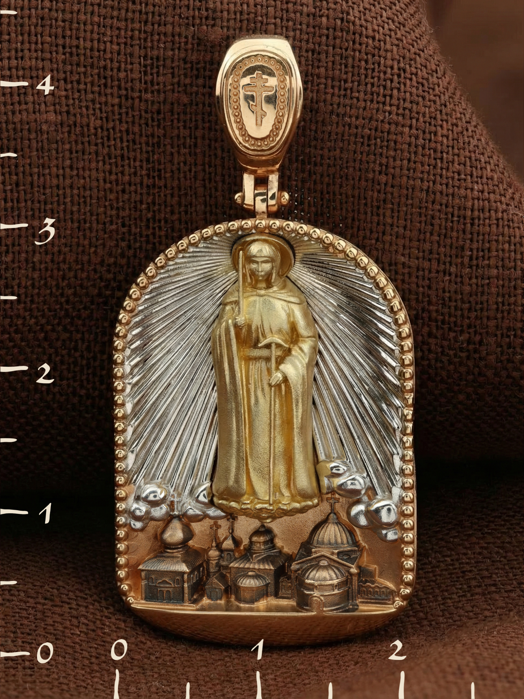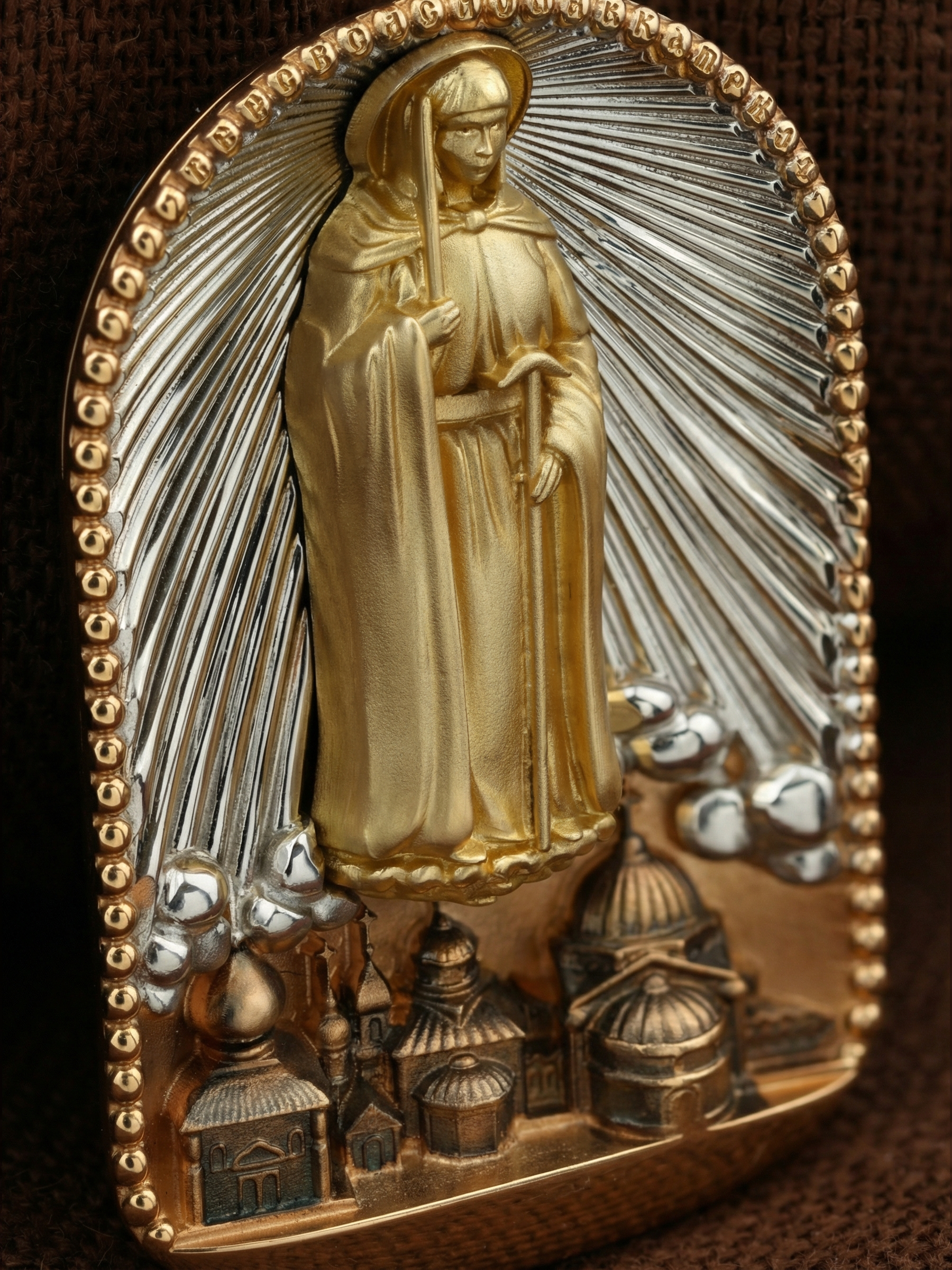 На лицевой стороне образка изображена икона Божией Матери «Свеча Неугасимая Огня Невещественного». Икона изображает Пресвятую Богородицу с посохом в левой руке и зажженной свечой — в правой. Находится икона он в Свято-Алексеевском монастыре г. Углича, основанном Митрополитом Алексием в 1371-м году. По преданию, Божия Матерь явилась настоятелю монастыря Евангелу с посохом и свечой. Это было примерно в 1864 году когда и была написана икона. До 1894 года она пребывала в кладовой обители около тридцати лет. 23 июня же того года из Петербурга прибыл в обитель один больной купец. Явившись к настоятелю, он подробно рассказал о своей болезни и о том, что ему явилась во сне Божия Матерь и повелела отправиться в Углич, где находится Её икона, и помолиться перед ней, обещая ему исцеление. Настоятель велел разыскать эту икону. Его повеление было исполнено, и икона с великим торжеством была перенесена в Успенский храм монастыря. Когда больной купец помолился перед ней, то в скором времени совершенно выздоровел. В благодарность за полученное исцеление он обложил икону серебряной вызолоченной ризой. И таких исцелений и утешений зафиксировано немало, икона помогает всем, «с верою к ней притекающим». К чудотворному образу Божией Матери отовсюду стекаются люди и по молитвам заступницы получают помощь и утешение.