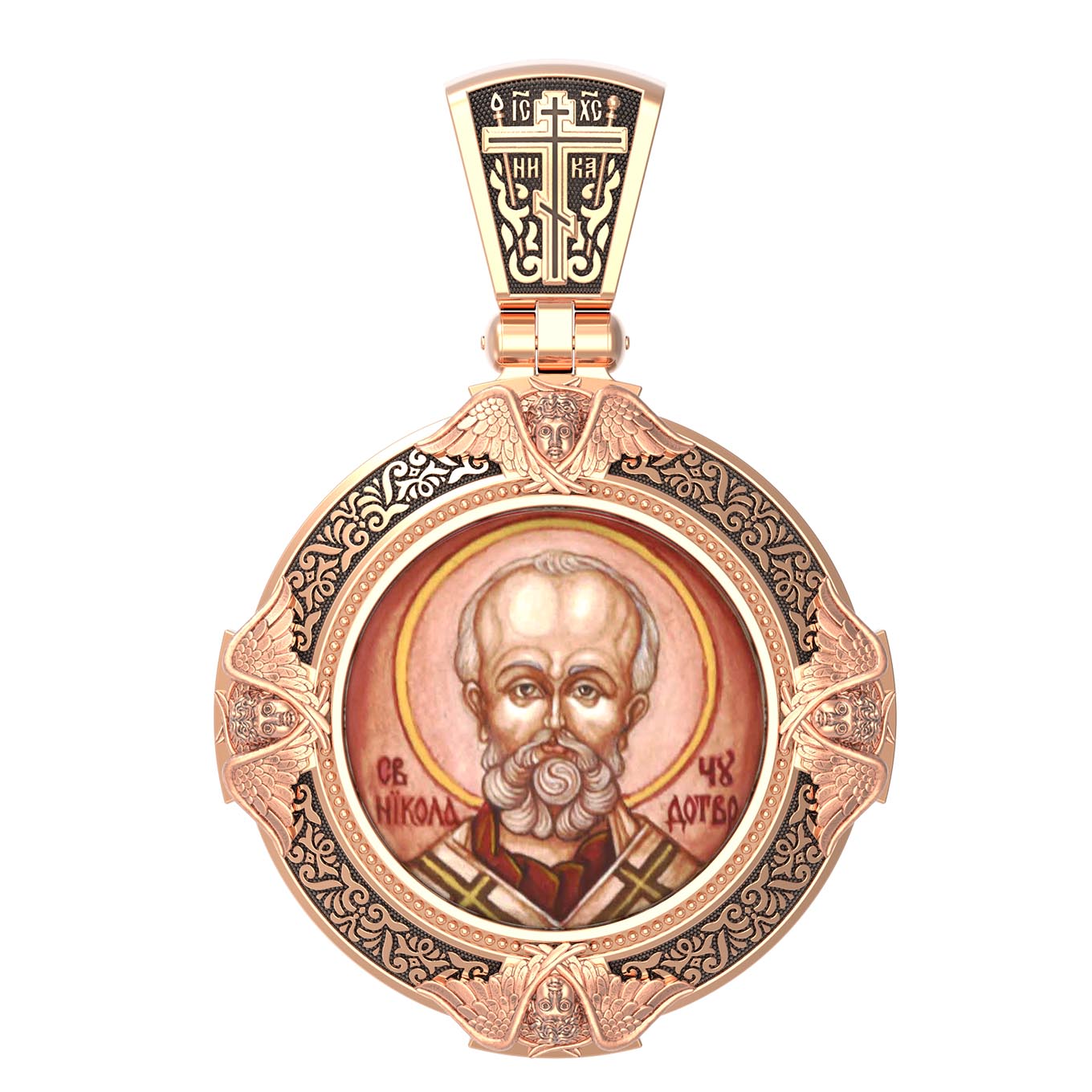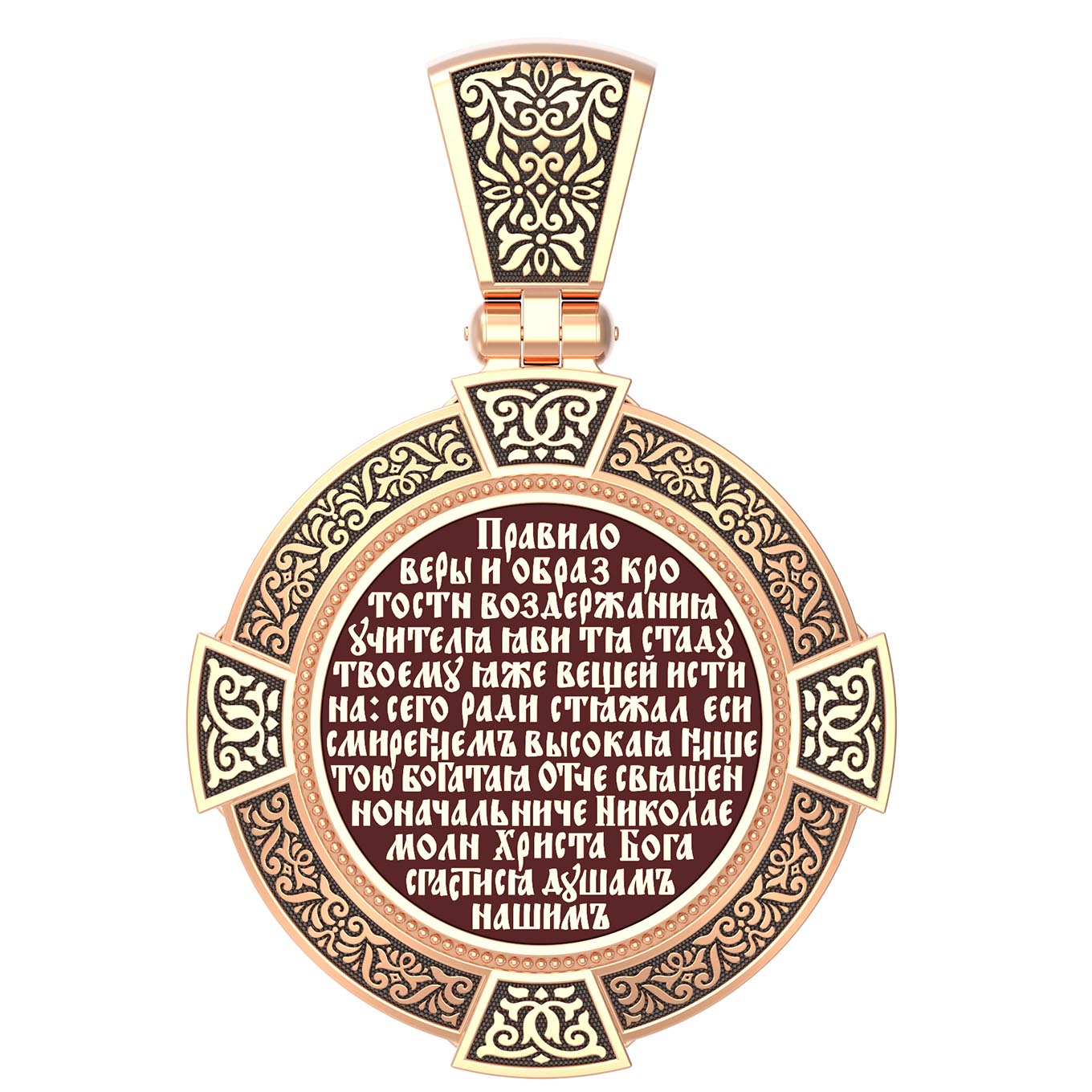 Лицевую сторону возглавляет икона Святителя Николая Чудотворца. Живший в III веке епископ Ликийского города Миры — самый почитаемый святой не только в России, но и во всем мире. Николай Чудотворец, помощник в делах, покровитель учащихся, утешитель обиженных и нуждающихся, целитель самых страшных и тяжелых недугов, предстатель и молитвенник за людей перед Богом. Также Святитель Николай Чудотворец известен своими молитвами за путешественников, когда непрестанный ветер и бушующие волны утихают и корабль заходит в спокойную гавань.