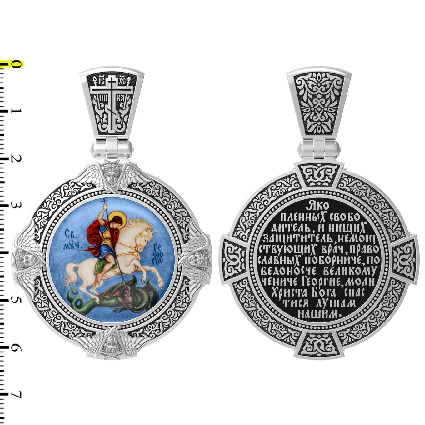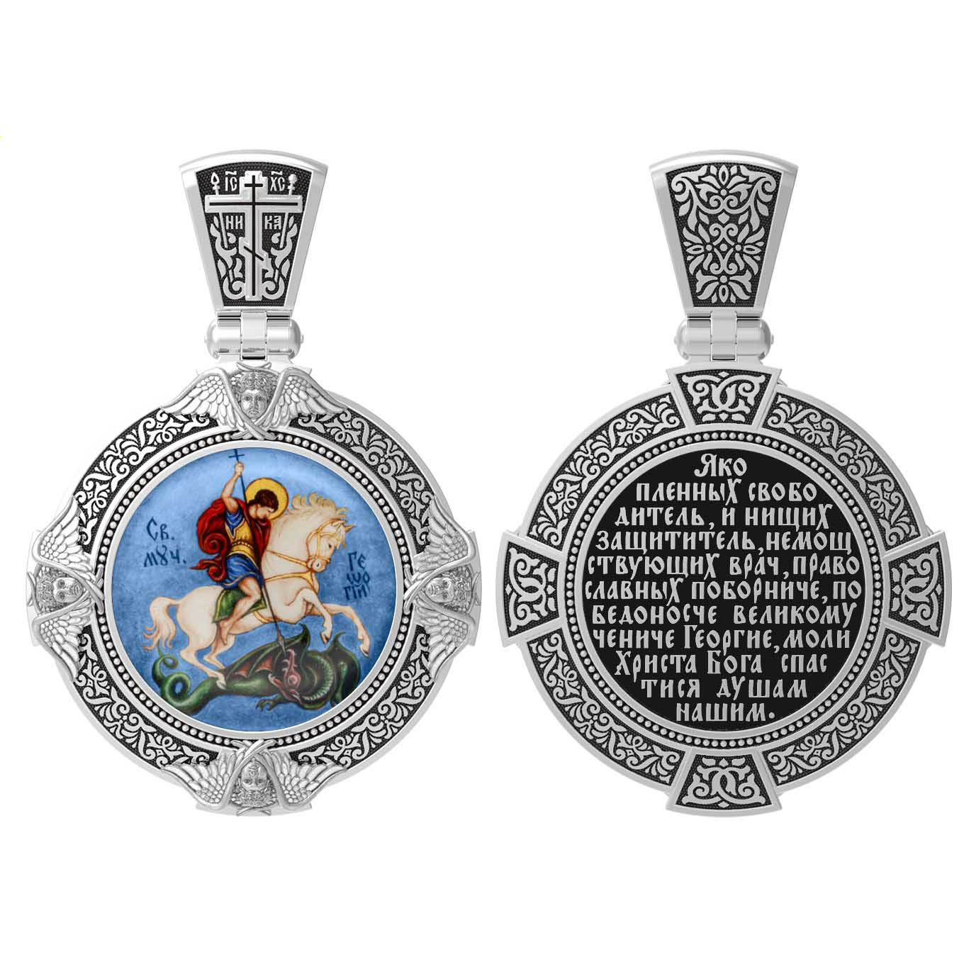 Образ Великомученика считают одним из наиболее чтимых Святынь, в Святыни Православных он олицетворяет собой заступника для верующих, чья жизнь имеет какое-либо отношение к военным делам, также он может оберегать и землевладельцев. Одно из самых великих чудес которое сотворил Великомученик так это — спасения всего города от устрашающего змия. Молитвами и своей непреклонной верой, взываемой к Всевышнему, он смог одолеть чудовище. Святой убил змея, спас жителей и их души от влияния дьявола, породив в них надежду и веру в Господа, призывая людей принять христианскую веру. Поскольку при жизни Святой Георгий был военным, он считается покровителем всех, кто имеет отношение к армии — военнослужащим, участникам боевых действий. Молитва перед иконой Георгия Победоносца поможет защититься от врагов, одержать победу в сражении (военном, спортивном, духовной брани с дьяволом), содействие в установлении мира между членами семьи, избавиться от телесного недуга.