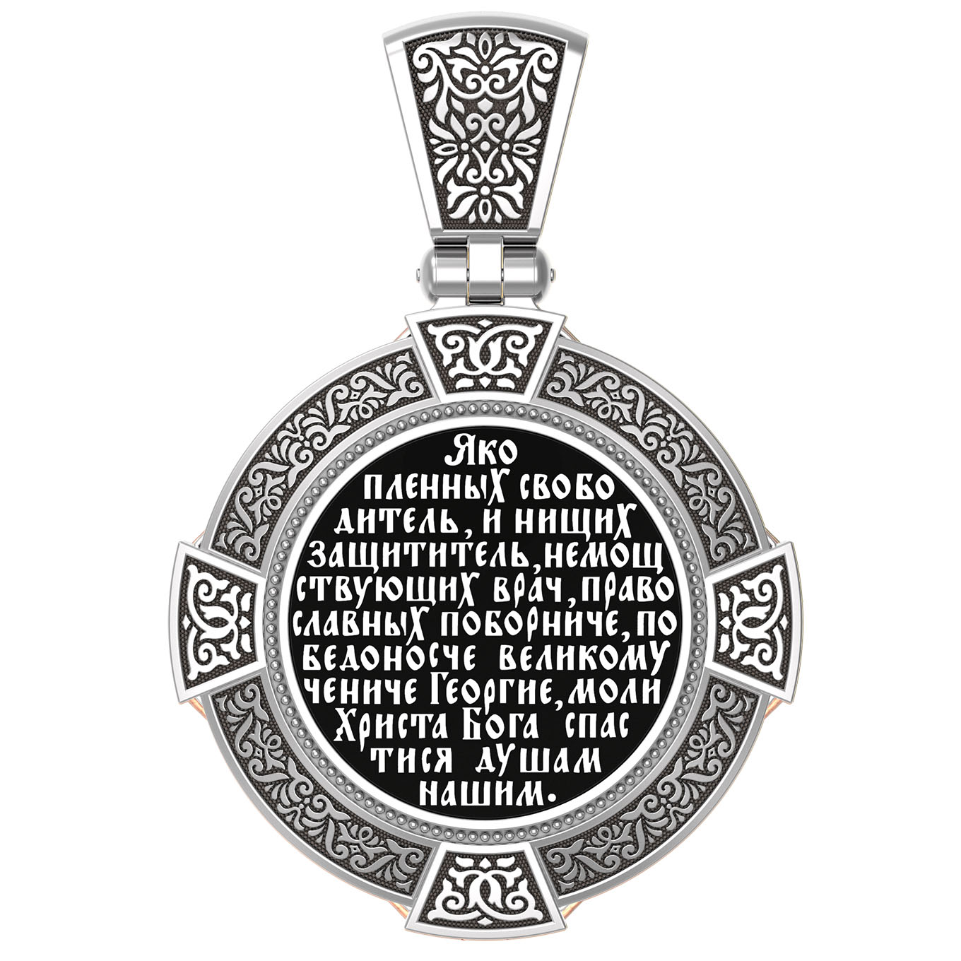На обороте написана молитва"Яко пленных свободитель, и нищих защититель, немощствующих врач, православных поборниче, победоносче великому чениче Георгие, моли Христа Бога спастися душам нашим.»